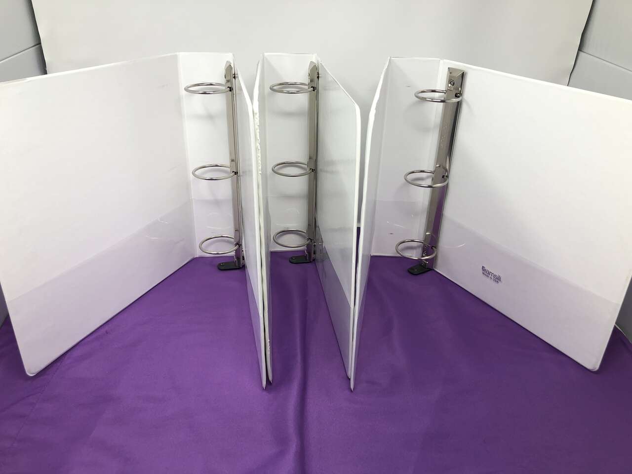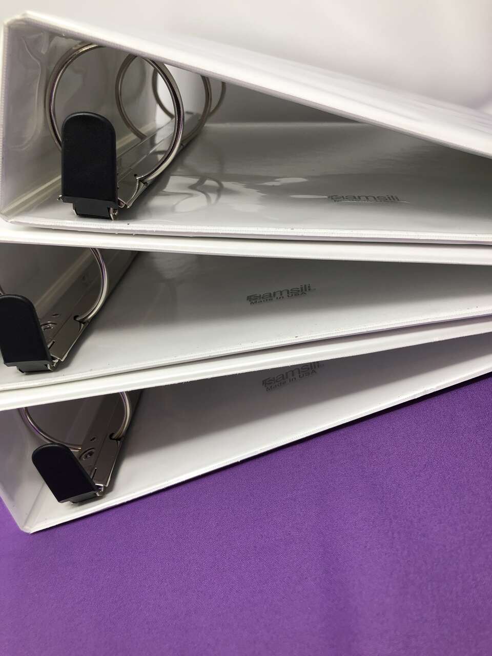 VenmoWe have (3) 2in 3 Ring Binders that come with EZ comfort rings. That means you only need to push that black lever up and down to open and close the rings. It's wonderful! The clear view plastic coverings allow for easy customization and labeling. These are an absolute must have.