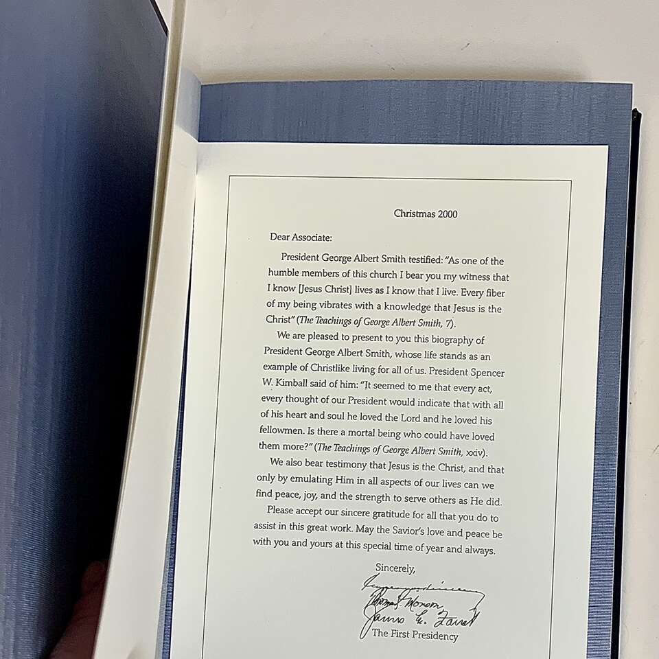 Venmo“The Teachings of George Albert Smith” navy blue leather bound hardcover with gold gilded pages and place saving ribbon. This Church of Jesus Christ of Latter Day Saints employee gift with Christmas card and signed insert from the first presidency. Message me if you’re interested in purchasing.