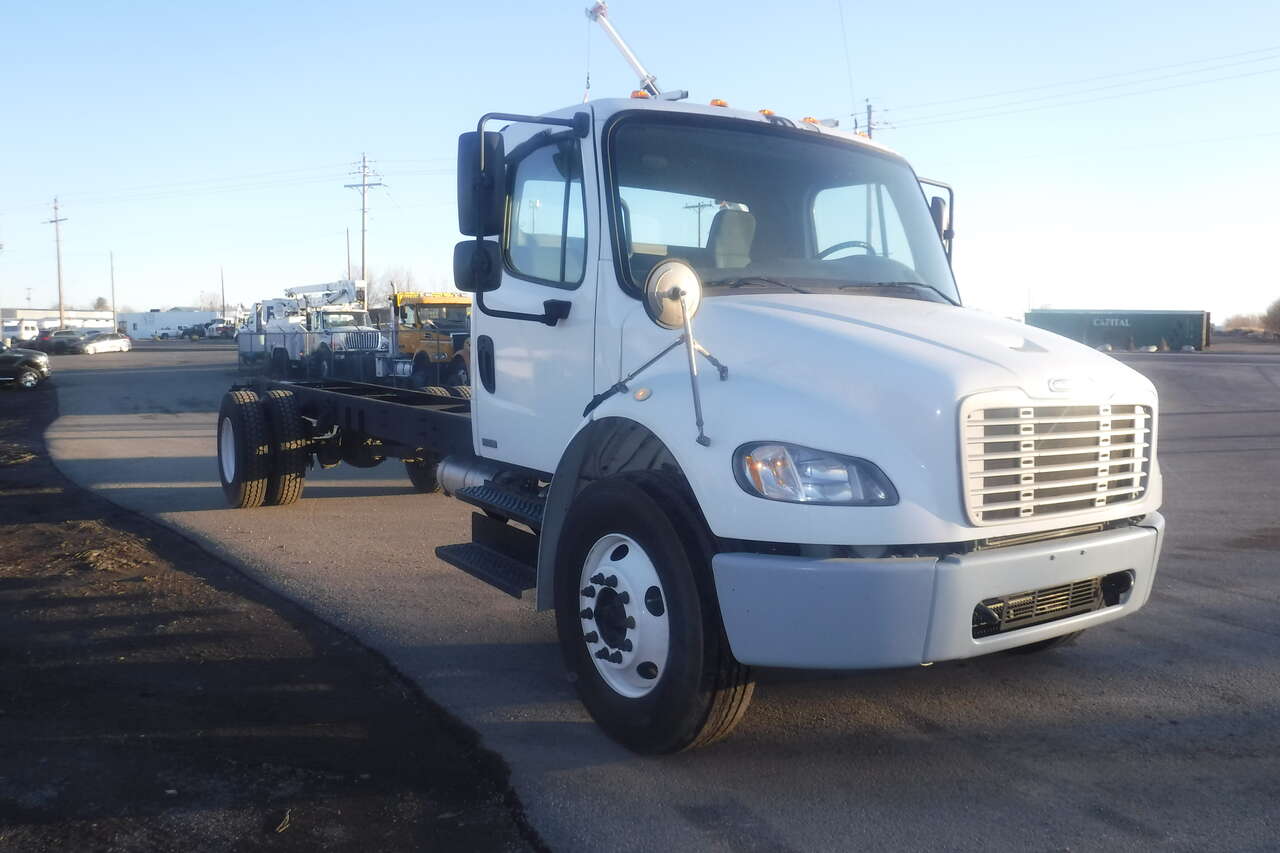 2012 FreightlinerMB2 Business class S/A cab and chassis. Cummins ISC Diesel with 280 HP. Allison Automatic transmission with over drive. Near new Cummins Reman engine with low miles. PS,AC,CC, Jake Brake. 35,000 GVW. 14 Ft. cab to trunnion. Very clean and well maintained RUST FREE truck that runs and drives like new and is bed ready. $19,900 Located in Twin Falls Id. Call 208-613-0050