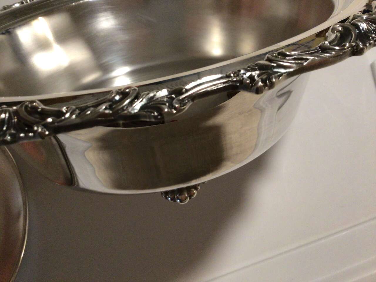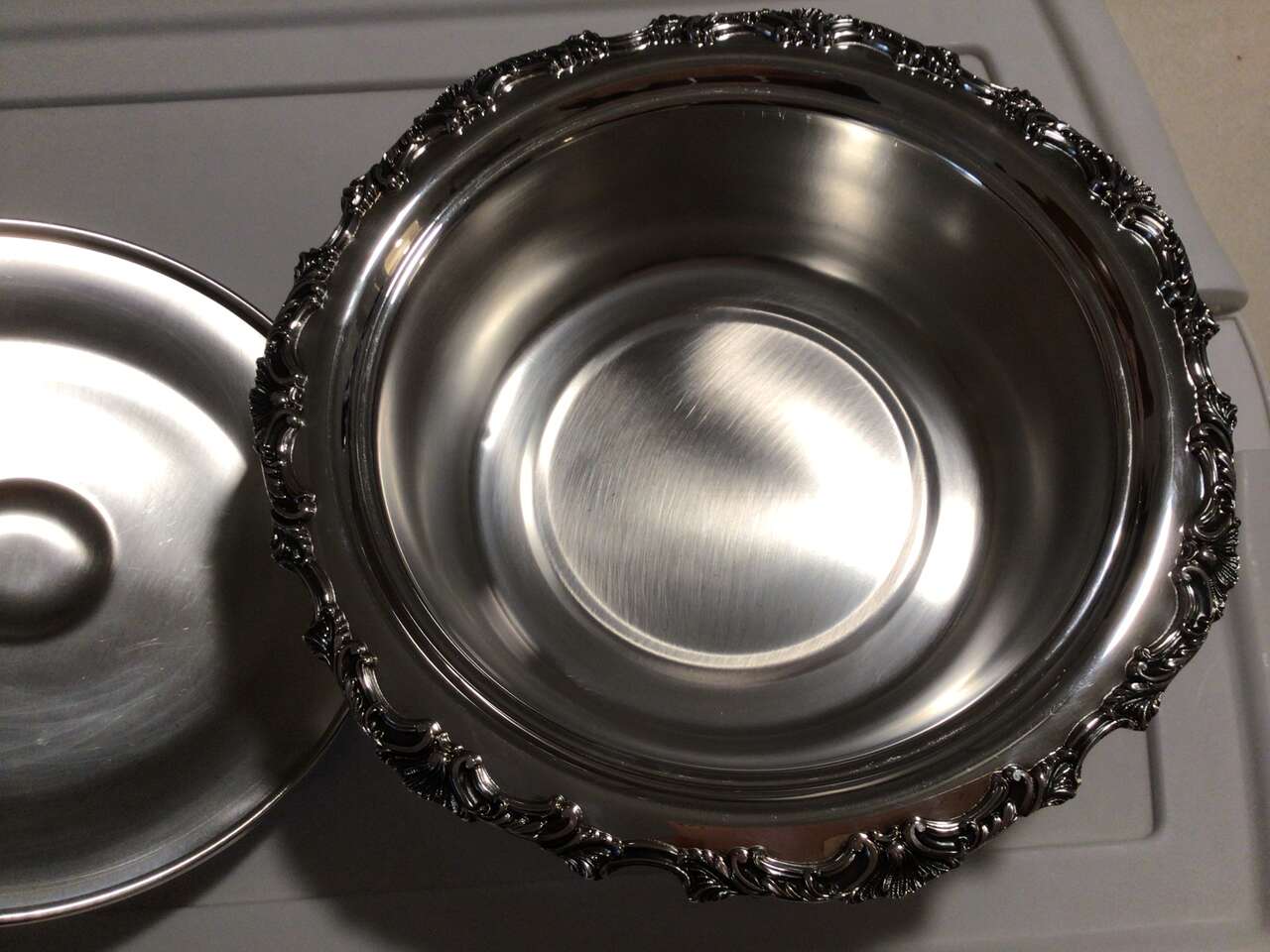 This listing is for a silverplate covered casserole, about 11 1/2" wide, Sheffield reproduction made by Oneida, pattern is Ascot. This is in pristine condition with little, if any, signs of use.