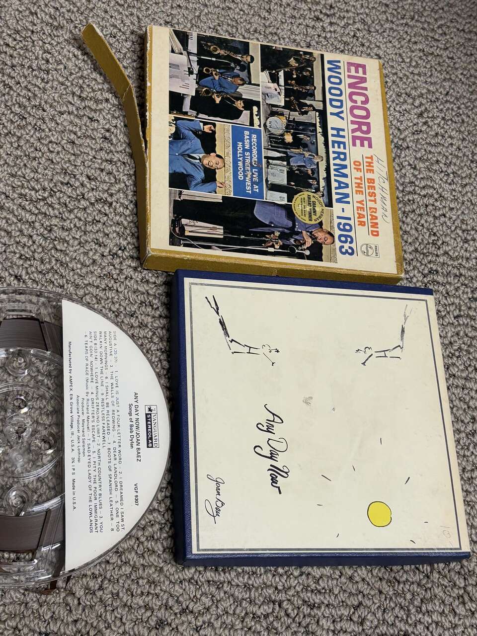 Joan Baez, Any Day Now 7” reel to reel audio tape (songs of Bob Dylan) vintage $20. I have a nice stack of other studio pre-recorded reel to reel tapes for sale Prices vary by title