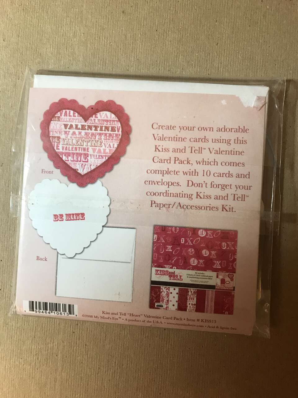 My Mind’s Eye Kiss and Tell Heart Valentine Card Pack. All cards are new. There are 9 cards in this pack