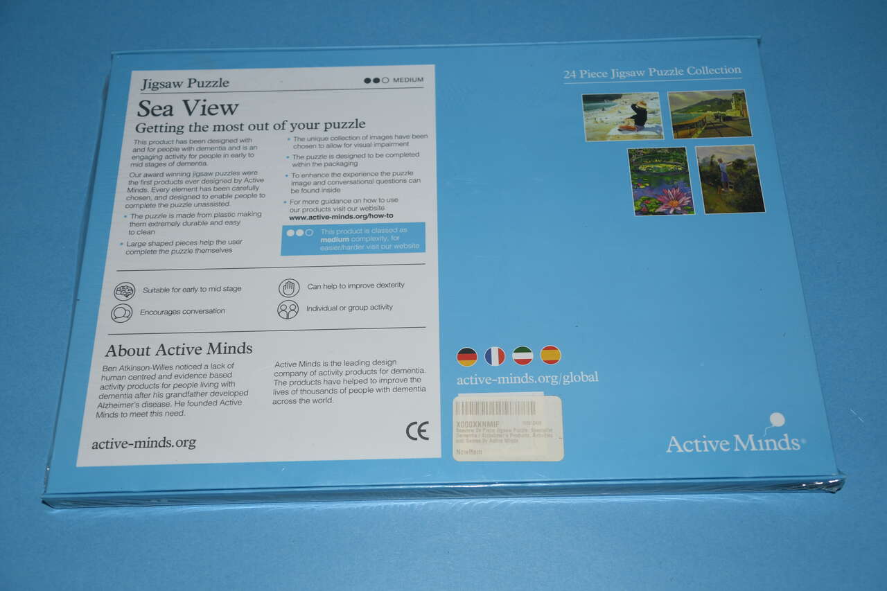 This NEW, SEALED "SEA VIEW" Jigsaw Puzzle was designed for people with early to mid stage dementia. It has 24 LARGE PLASTIC pieces. Our home is smoke free. Questions??? Please ask. We are located in Plain City. Cash only please.