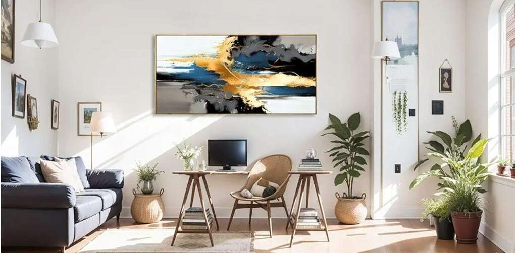 Abstract Wall Art, Canvas Painting 24x48 Framed