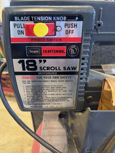 For sale is a Sears Craftsman 18" Scroll Saw. Excellent conditon. 120 volt. Comes with guide and safety covers.