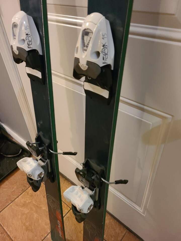 Comes with adjustable tyrolia peak 15 bindings.