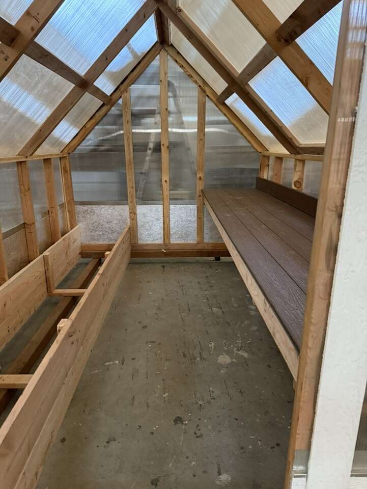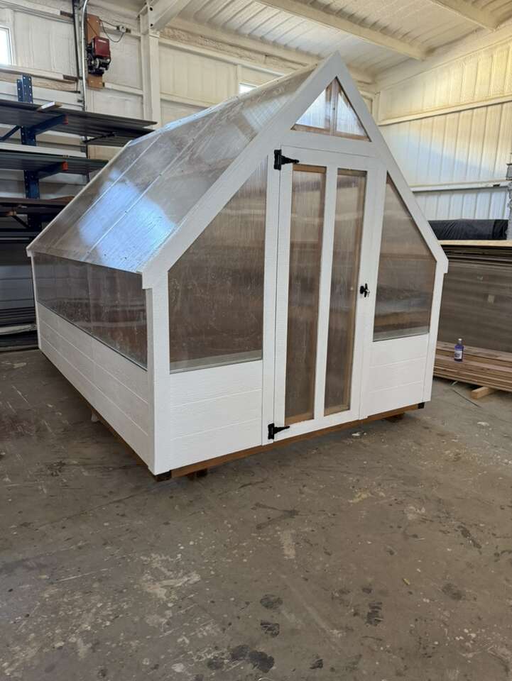 Topshed greenhouse with automatic vent, trex potting bench, and planting bed. Delivery available Utah, Idaho, Wyoming