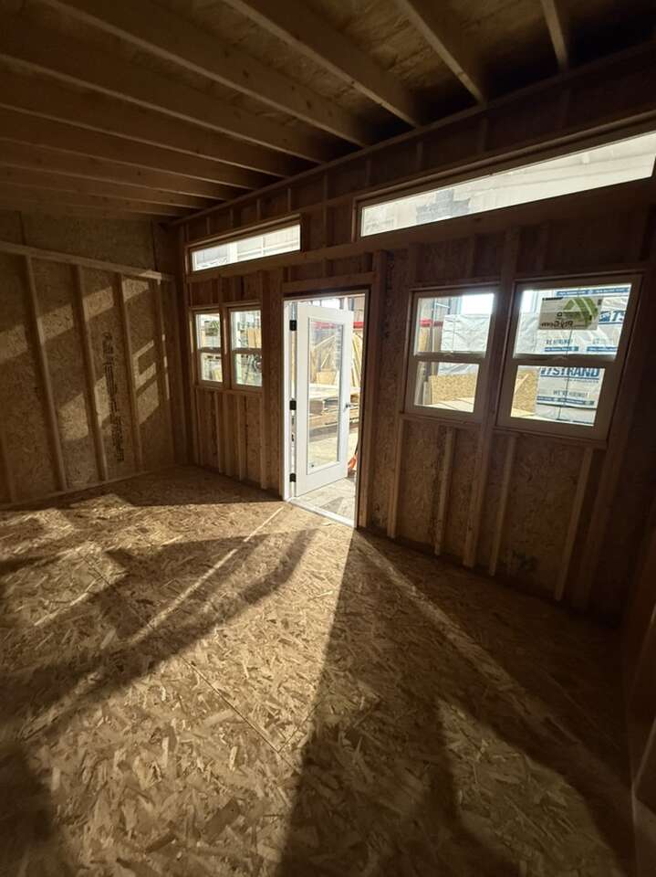 10’ tall wall modern lean to shed with residential door and double pane windows. Get this one or a white one or design your own Topshedutah.c0m