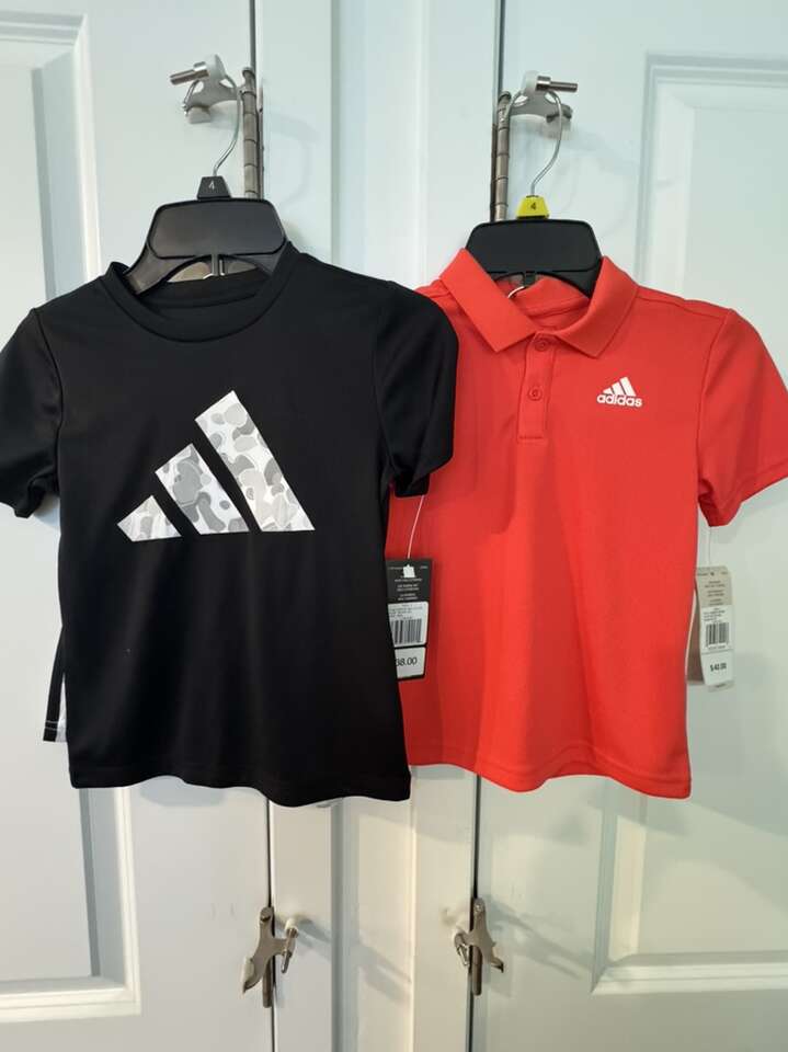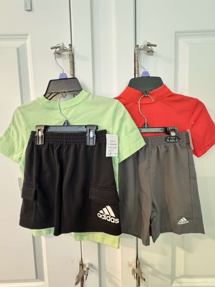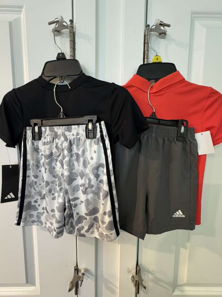 ApplePayNew with tags kids adidas shirt and shorts sets 2 are size 5 and 2 size 4.
