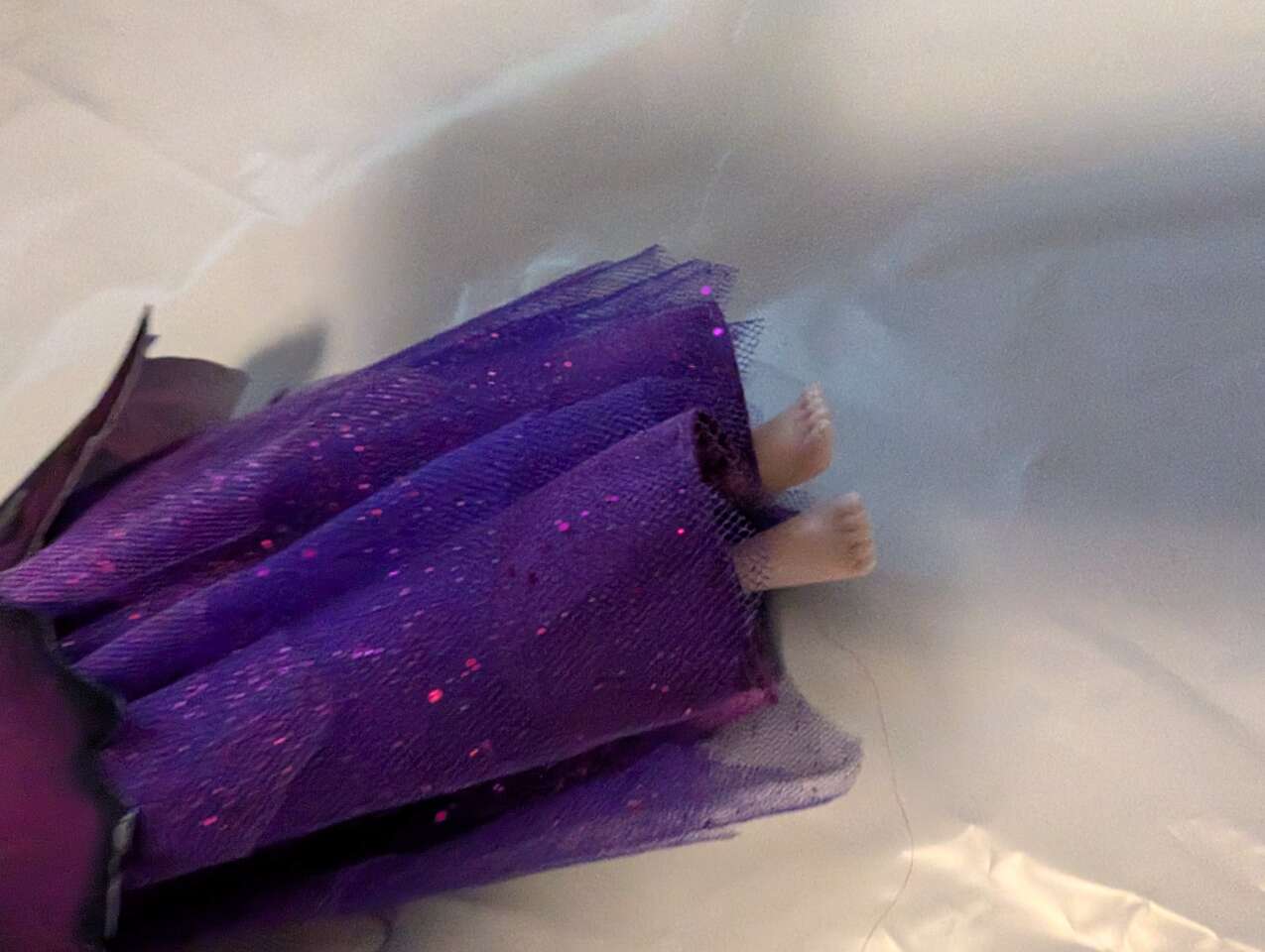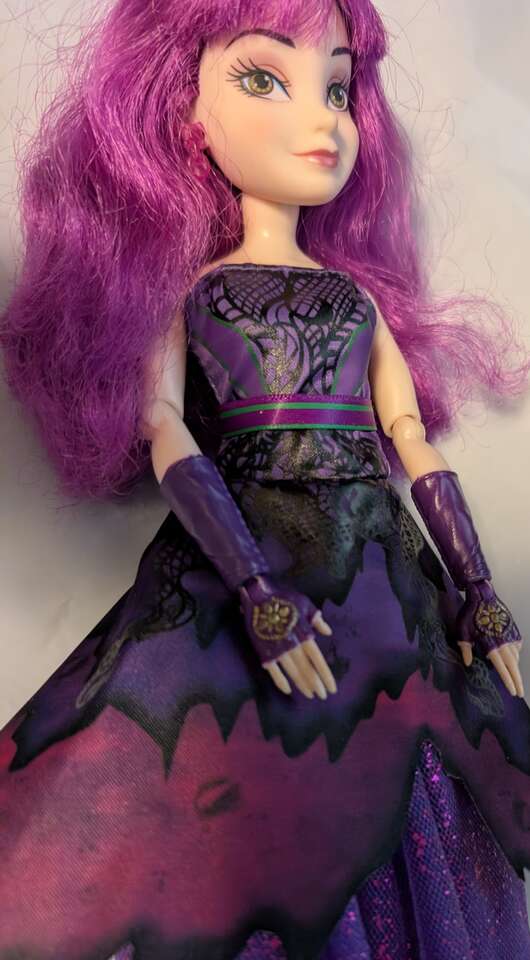 11" tall. See all picturs. She missing shoes. You will get doll shown in pictures