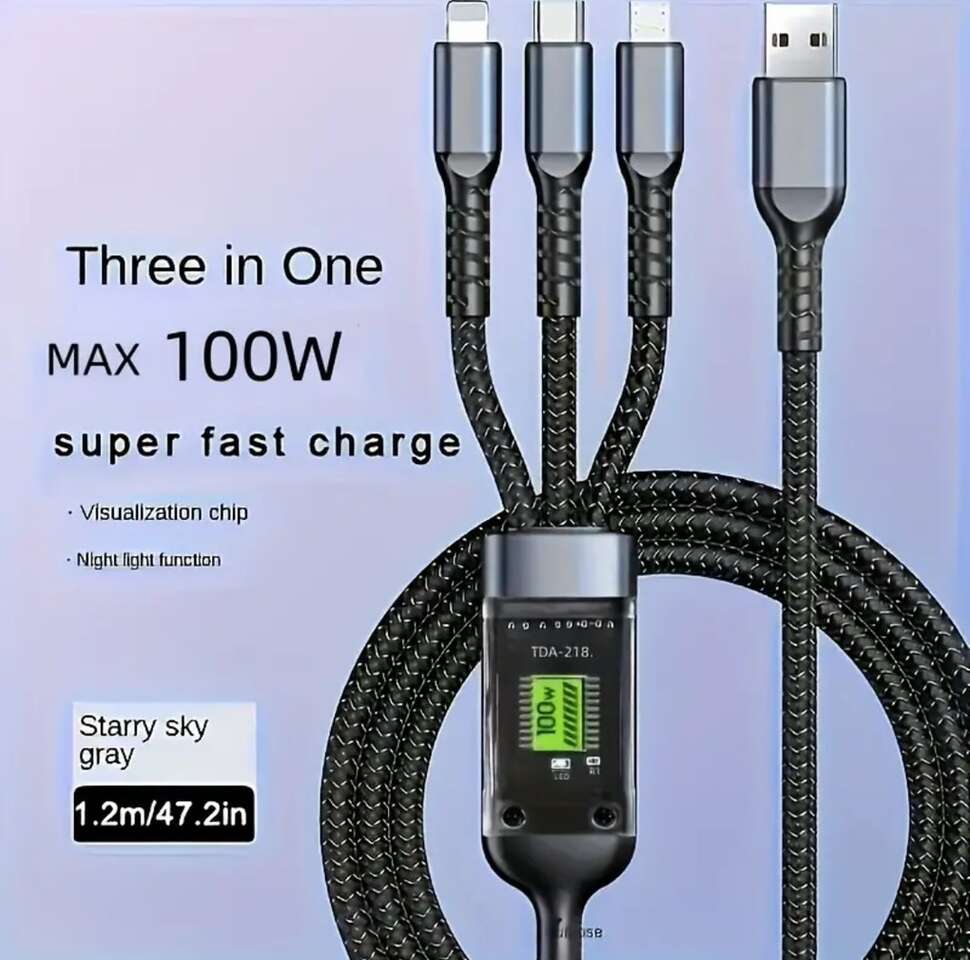 Ultra-fast Charging Line Digital Multi-function Three-in-one Charging Power Supply USB-C Line for SamSung for Galaxy/ for Xiaomi Note 7 Redmi Note 8/for MacBook/for iPad Compatible for iPhone Line.