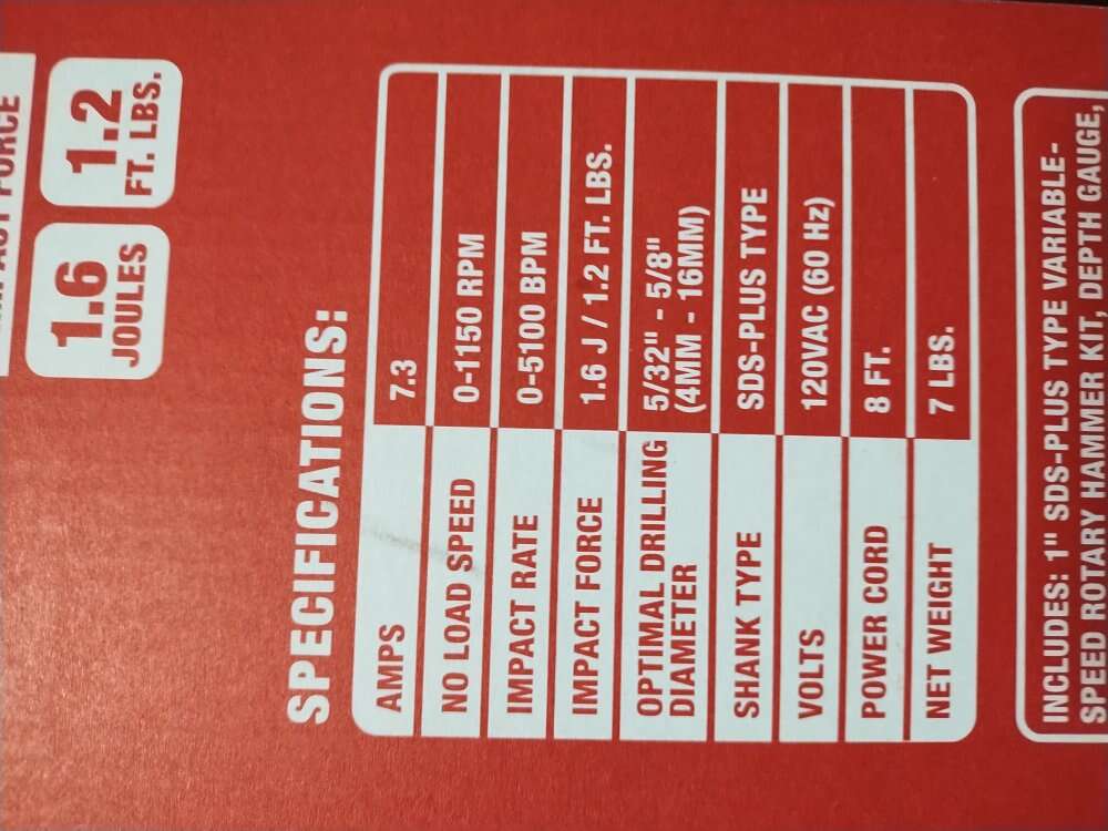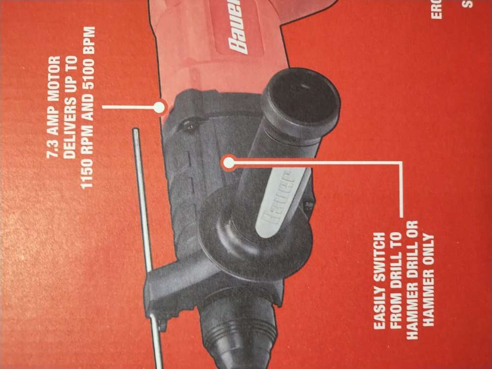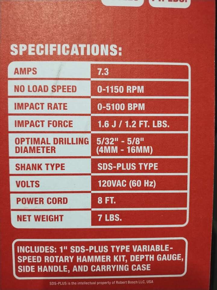 This Variable-Speed Rotary Hammer gives you the power to bore into concrete and masonry or drill into wood with ease. The rotary hammer uses SDS-PLUS type bit retention for easy bit changes.