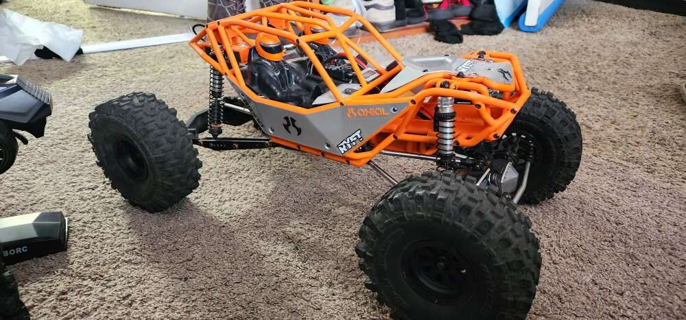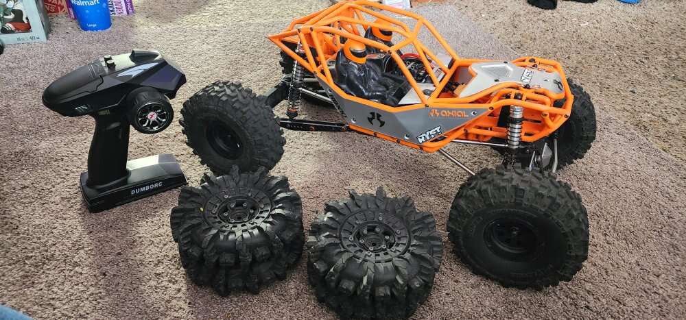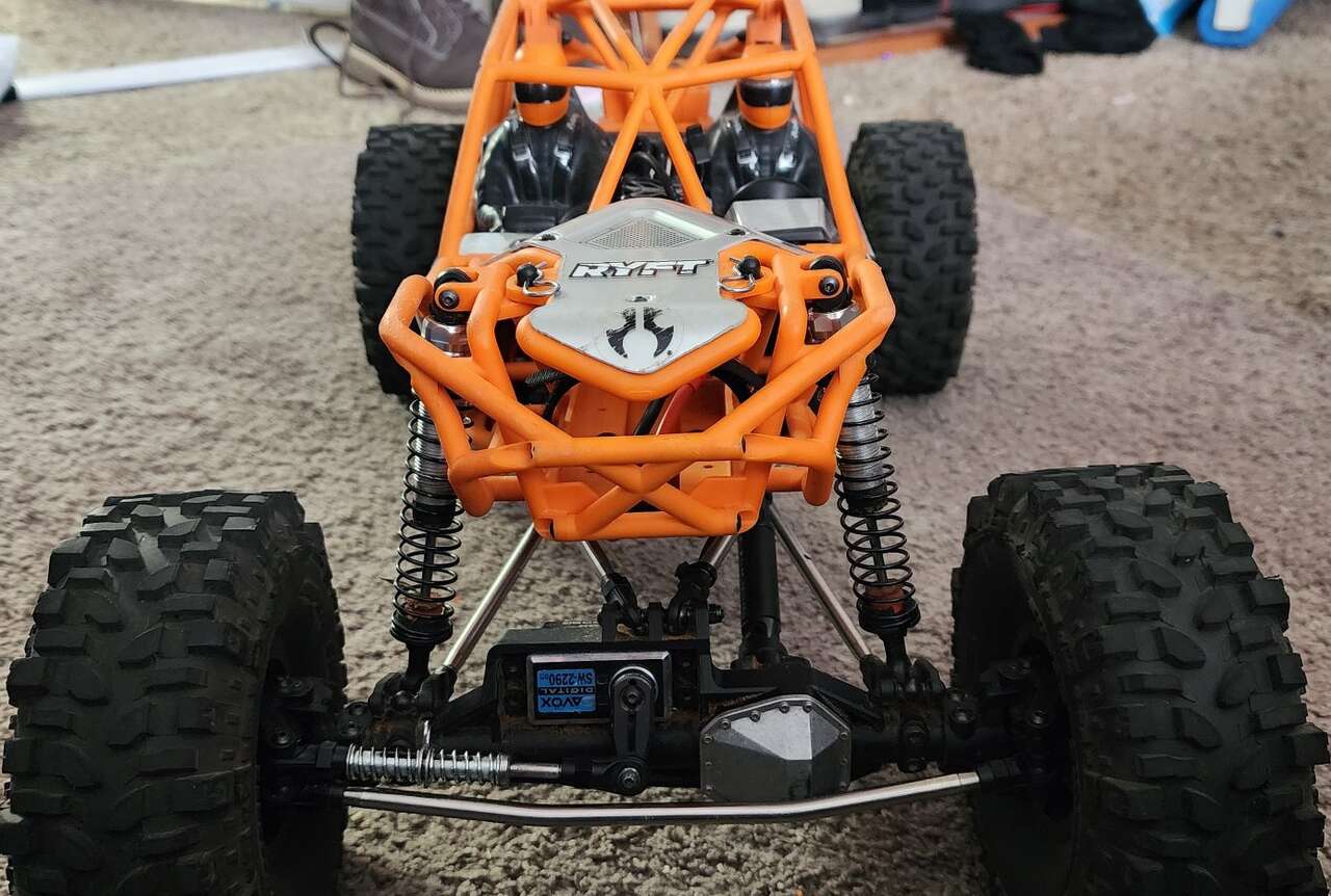 Axial Ryft rock bouncer with 2 speed transmission so you can bounce or crawl. upgrades include castle mamba X esc, sensored castle motor, savox sw-2290sg servo, servo AF steering link, vanquish servo horn, hot racing trailing arms, proline black mambas wheels/tires and a 6ch dumborc tx/rx. Just added window nets as well. (I will also include a lipo battery so its ready to run!!) If you have any questions give me a call or text. Thanks