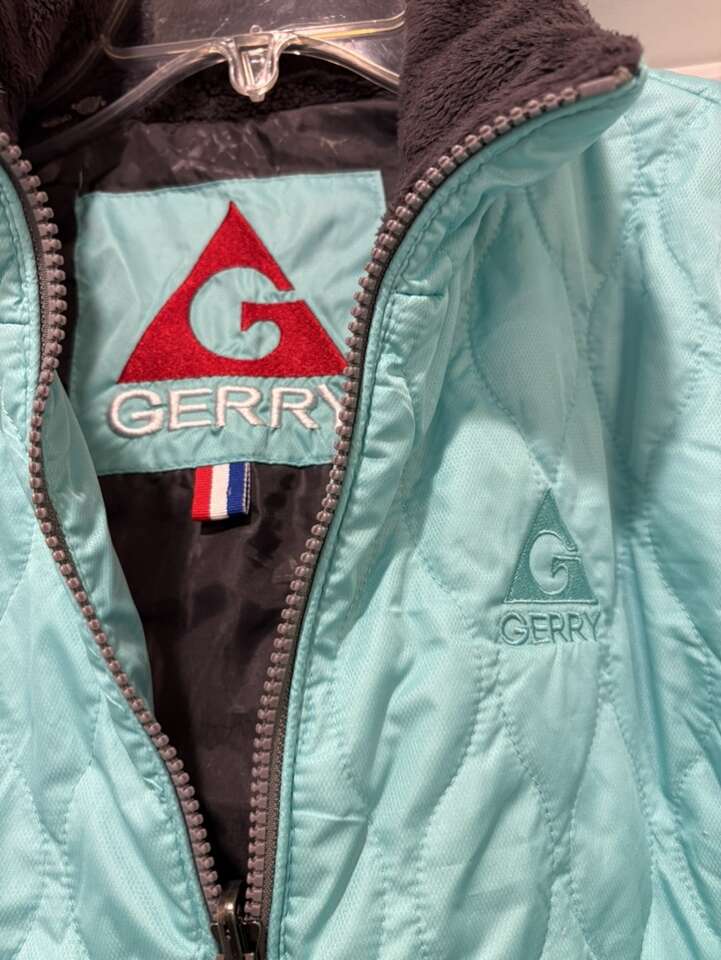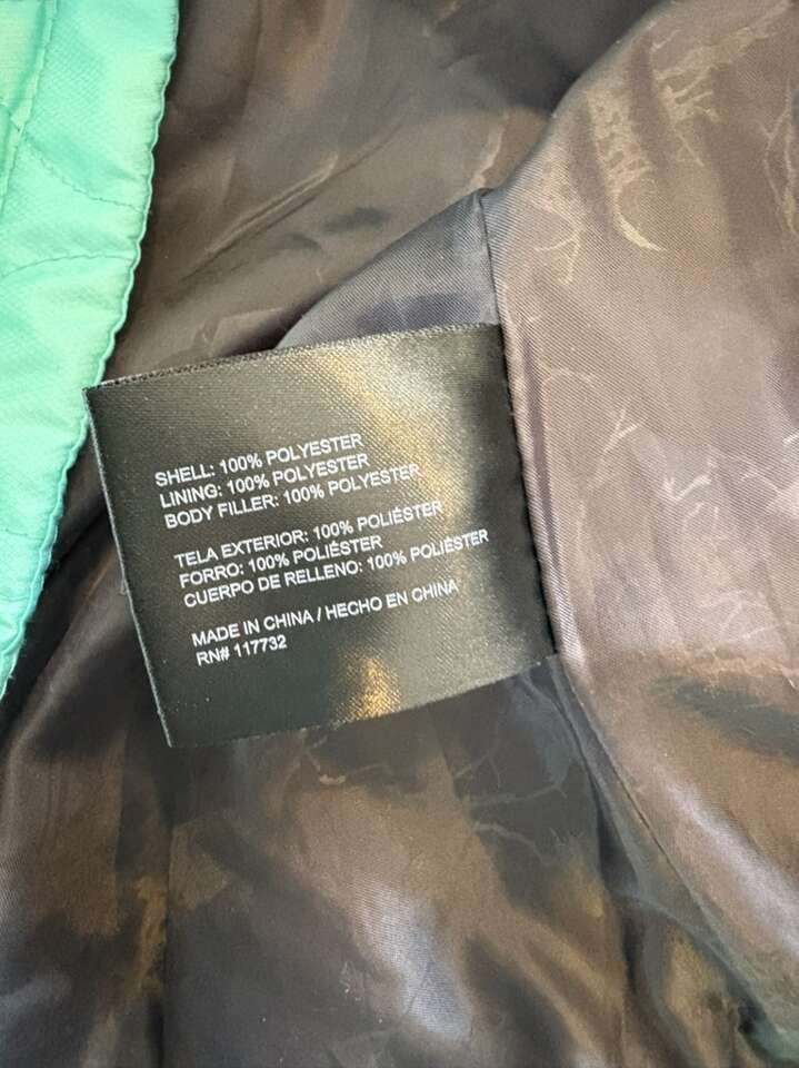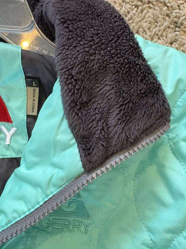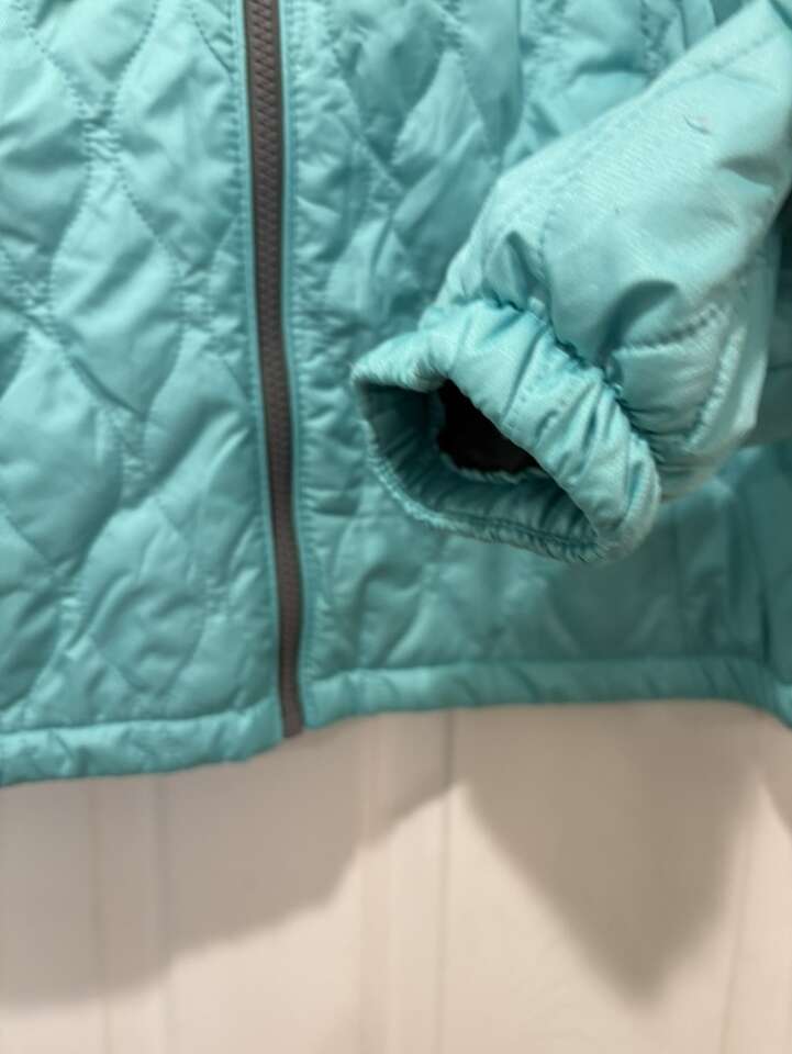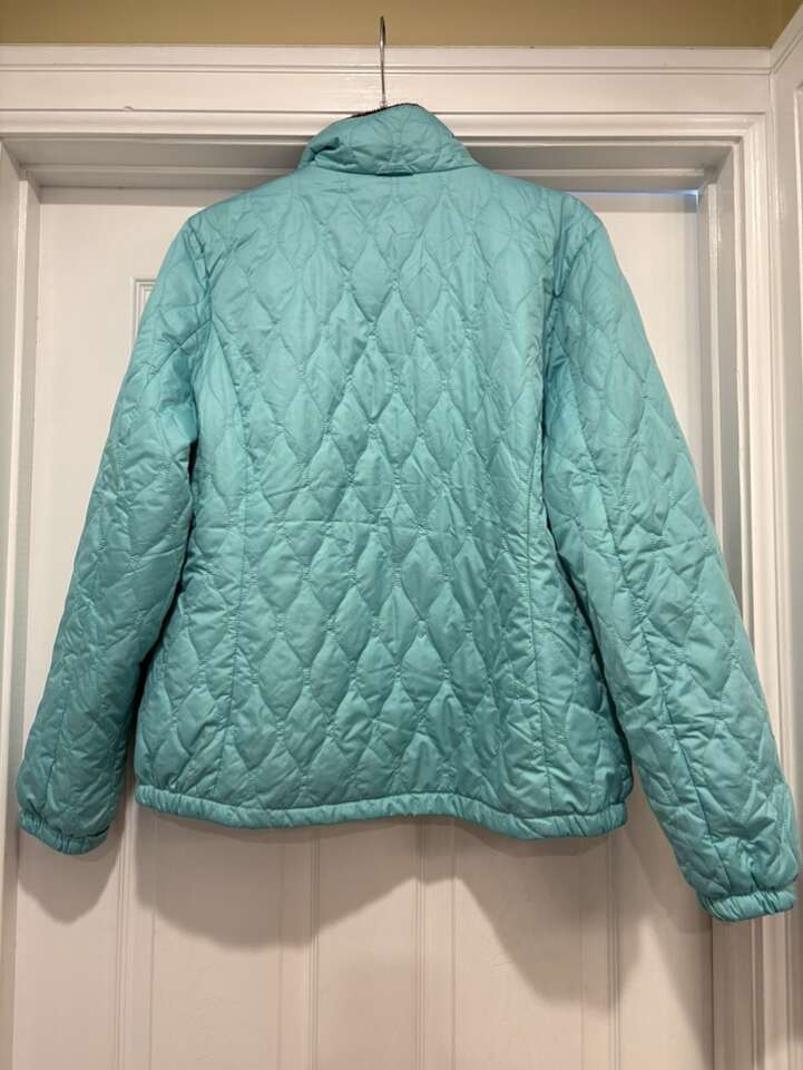 Used, great condition Ladies Large Beautiful aquamarine color Full zipper Quilted fabric Elastic wrist Pockets No smoke house Cleaning out the closets