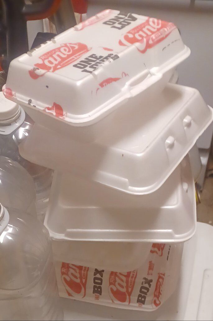 7). 5 White foam to-go containers.