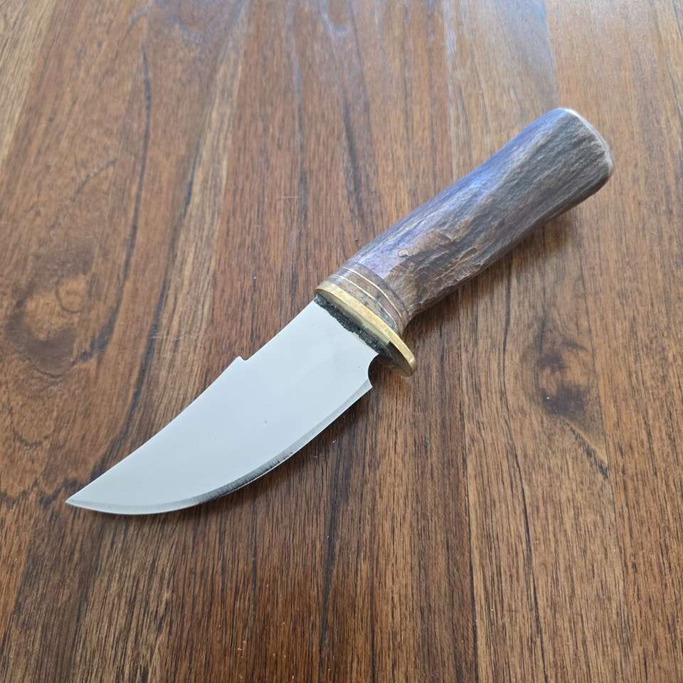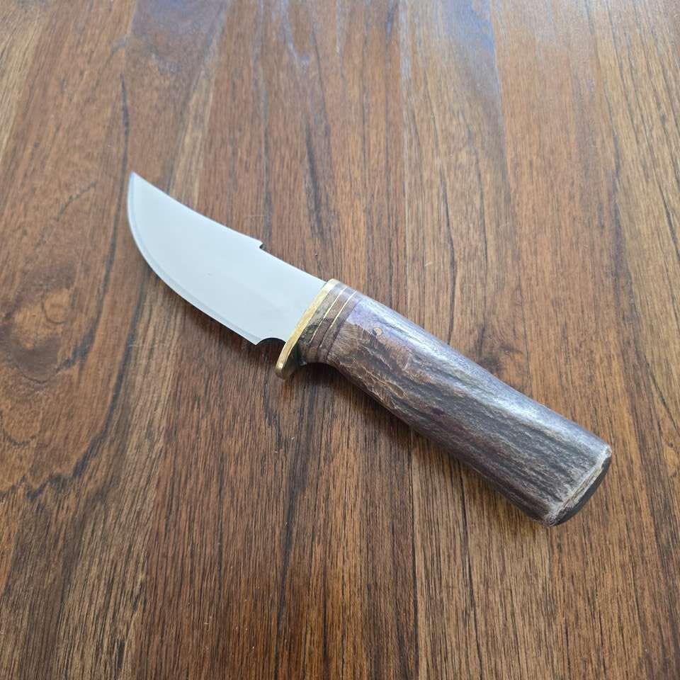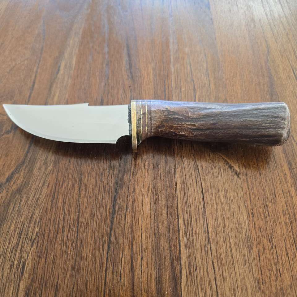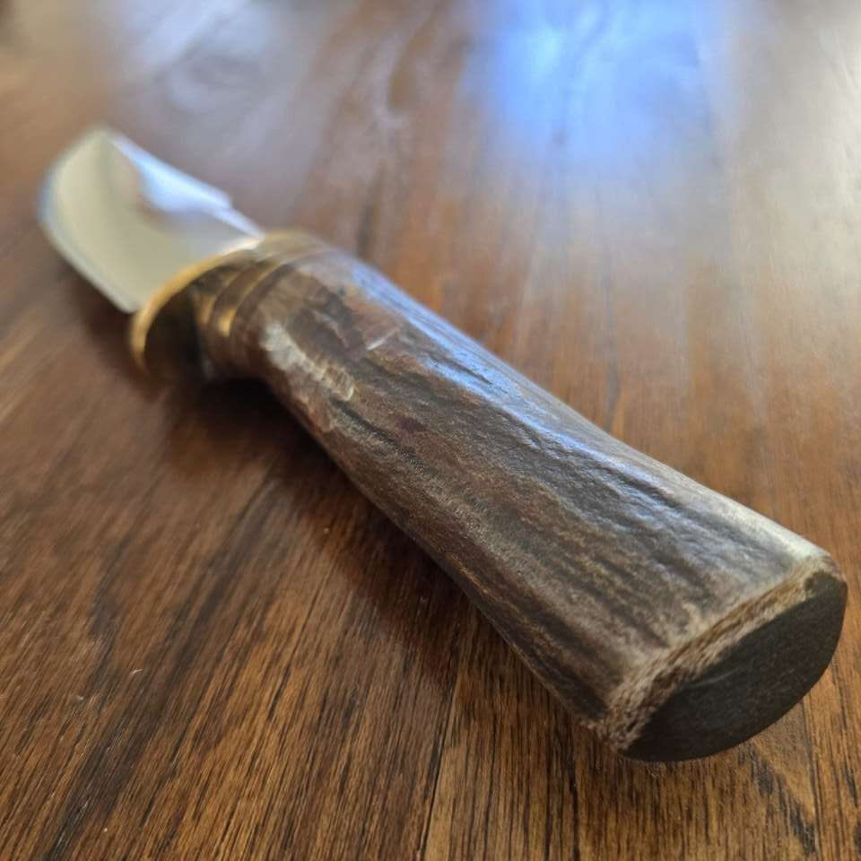 PayPalExtremely sharp. 1095 Steel Deer Handle (treated) Leather Sheath. 8 in blade 4.0 in blade 4.0 in handle Full tang