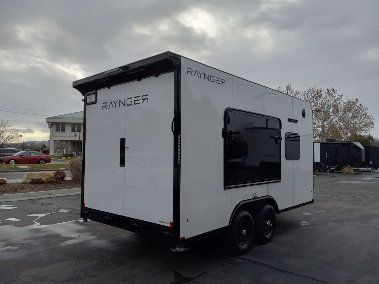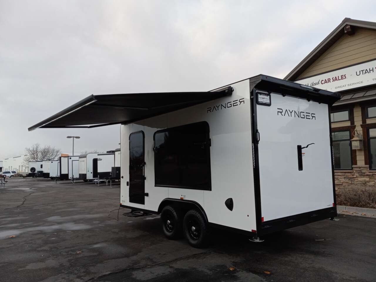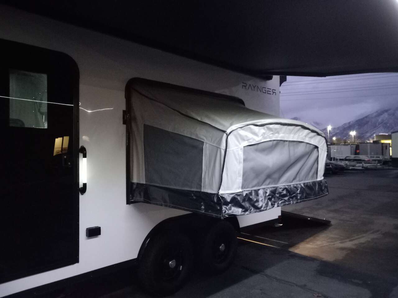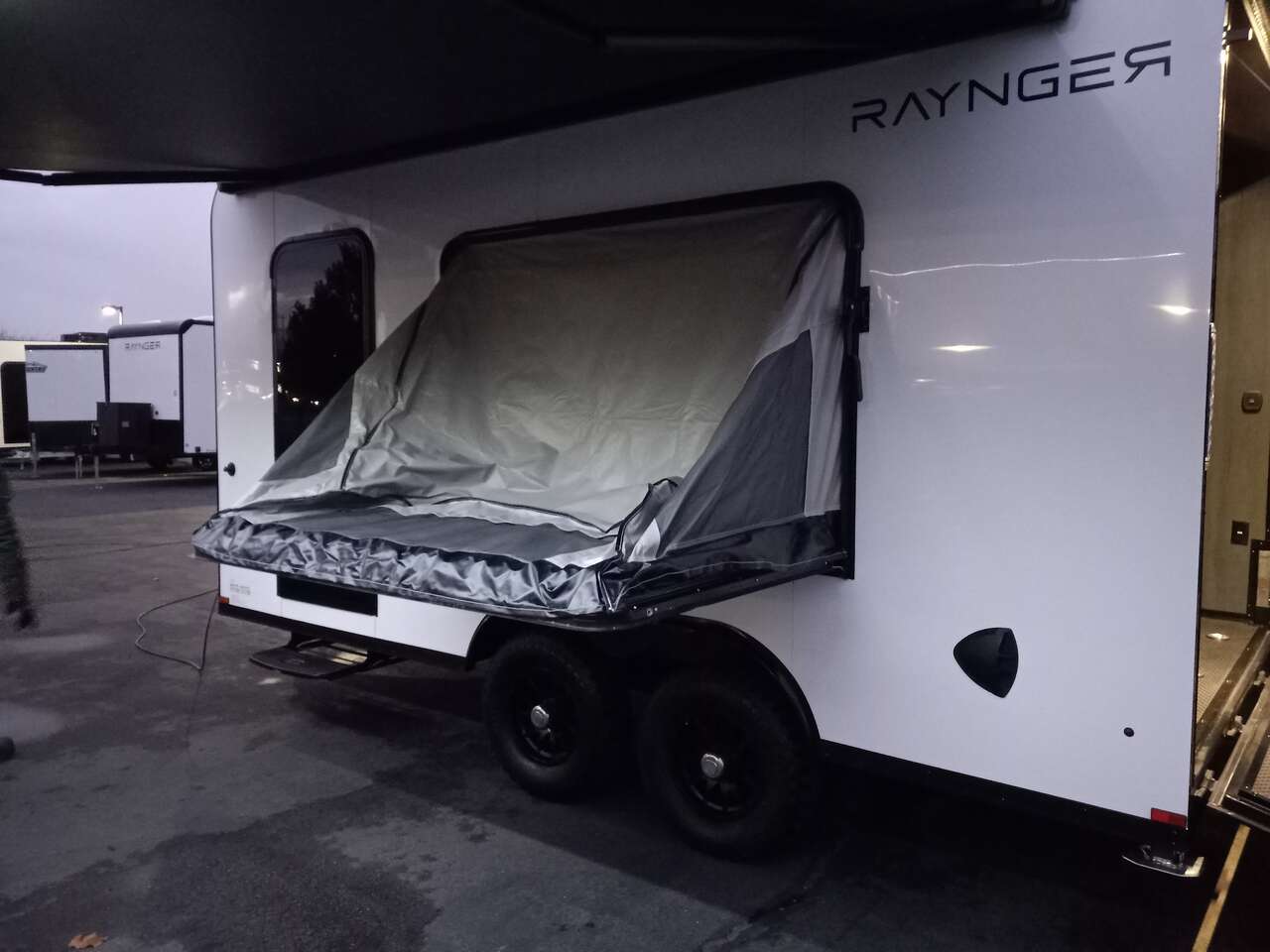 LIMITED TIME $259 A MONTH WITH ZERO DOWN WITH OUR SPECIAL LOCAL CREDIT UNION PARTNER!!! NO PRE-PAYMENT PENALTIES!!! NEW 8.5 WIDE MODEL!!! WILL FIT ANY STOCK SIDE BY SIDE UTV!!! RAYNGER PREMIUM OFF ROAD TOY HAULER CAMPER!!! 18 INCH GROUND CLEARANCE!!! OFF ROAD TIRES!!! FULLY INSULATED!!! HEATING AND A/C!!! WET SOUND STEREO!!! TWO FOLD OUT/POP OUT TENTS WITH MATTRESS!!! CARGO BASKET!!! LED LIT AWNING!!! 87 Inch Rear Entry Height/90 INCH INTERIOR HEIGHT!!! 90 Inch Rear Entry Width!!! Aluminum Ventilated Locking Generator Box!!! UPGRADED 5,200# TORSION AXLES!!! 14.2 Foot Long Garage Space!!! And Much MUCH MORE!!! Check out our Specs!!! Also available in 18 foot models. 18 Foot Models can have 3 Fold Out Beds/Pop Out Tents. 16 Foot and 18 Foot Models will fit ANY stock 4 Seater Side by Side • 6” I Beam Frame• Flat Top Design• Flat Front Design• Wall Posts 16” on Center• Cross Members 16” on Center• Roof Bows 16” on Center• Rust Inhibiting Z-Tech Protection on Chassis• Ameraguard on Tongue• Ameraguard on Rear Bumper• Ameraguard Around All Door Openings and Stepwell• Ameraguard Around Edges of Ramp Door• 3500 LB Spring Axles• 2-5/16” Coupler• One-Piece Aluminum Roof• ST235/75R15 Aluminum Wheels with Chrome Center Caps• 2000# Ramp Door with Eberhard Latch• 30” Tempered Glass RV Door with Screen Door• .030 Exterior Metal with Screwless Sides• 24” Black Stoneguard• 3” Black Bottom Trim• Sand Pad• Black Door Hold• 2.7mm Charcoal Textured Vinyl Ceiling • 9mm Charcoal Textured Vinyl Walls• 3/4” Engineered Wood Floor with Rubber Coin Overlay• (6) 1200 LB Floor D rings Installed with Backer Plates• LED Clearance Lights and Tail Lights• LED Back-up Lights• No Show Wheel Box• Spoiler with Toggle Switch• RV Step• 7’ Interior• (2) 17” Chrome Base Lights with Switch• (1) Black 17” Spot Light with Switch• (1) 30 Amp Panel with Marine Plug• A/C Unit with Heat Strip• (3) Interior Recepts• (1) Exterior Recept• 12V Battery and Charge Line• Prep for Backup Camera• Wet Sounds System• (3) Blue Interior Cabinet Lights• (1) 6’ Section of Flex Lights• Black ATP Rear Header and Hoop• Black ATP Fenders• Insulated Walls & Ceiling• Base Cabinets• Overhead Cabinets with Netting Over Compartments• Pop Out Tent• Black ATP Storage/Generator Box Mounted On Tongue SW094231 SW094231