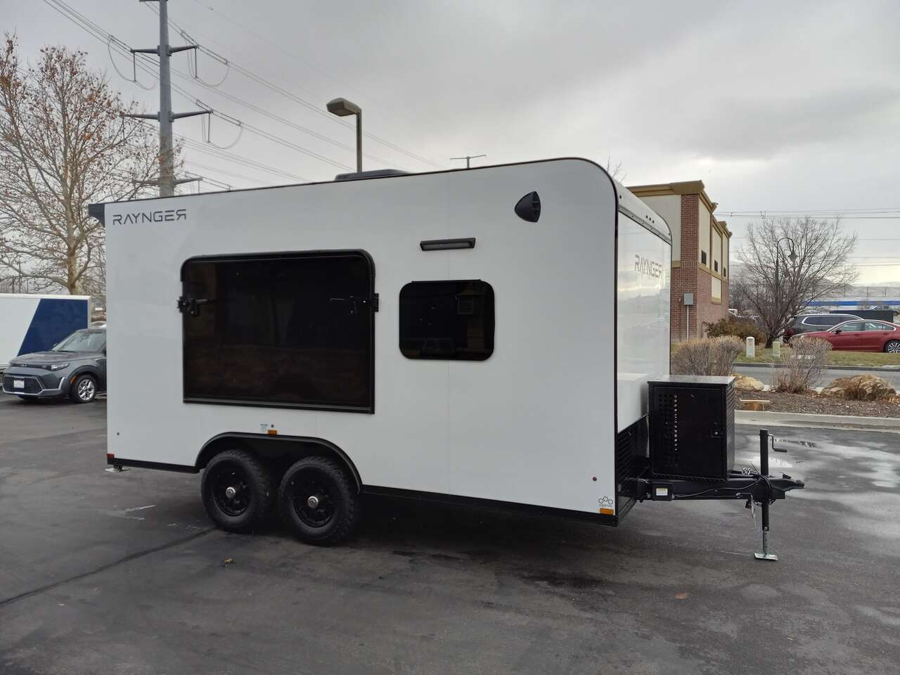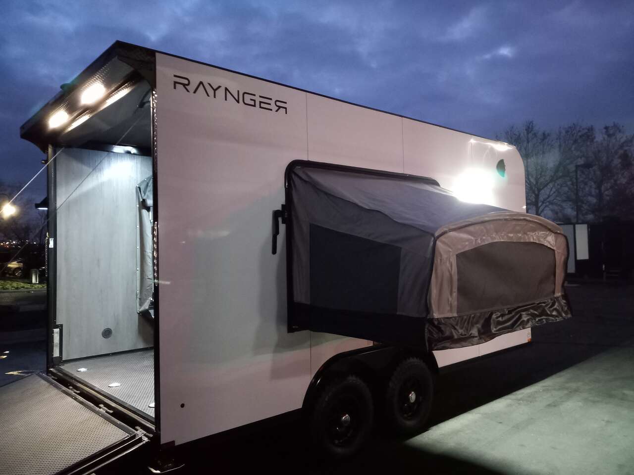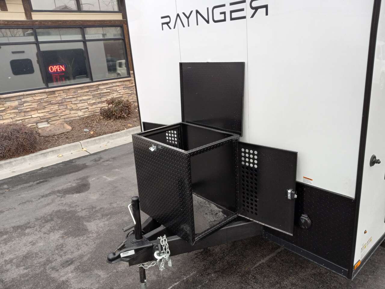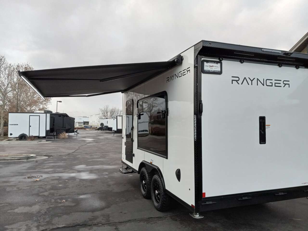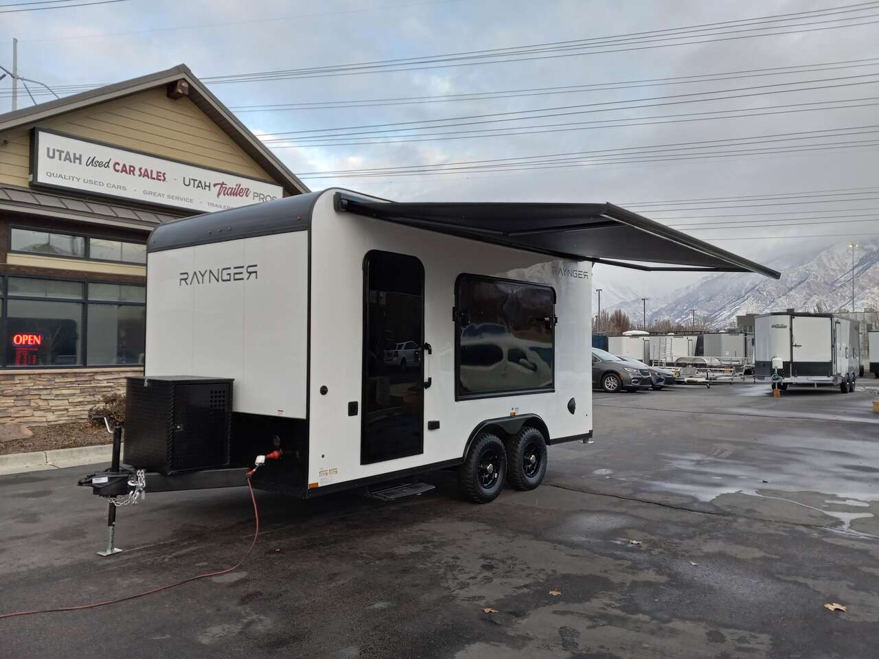 LIMITED TIME $259 A MONTH WITH ZERO DOWN WITH OUR SPECIAL LOCAL CREDIT UNION PARTNER!!! NO PRE-PAYMENT PENALTIES!!! NEW 8.5 WIDE MODEL!!! WILL FIT ANY STOCK SIDE BY SIDE UTV!!! RAYNGER PREMIUM OFF ROAD TOY HAULER CAMPER!!! 18 INCH GROUND CLEARANCE!!! OFF ROAD TIRES!!! FULLY INSULATED!!! HEATING AND A/C!!! WET SOUND STEREO!!! TWO FOLD OUT/POP OUT TENTS WITH MATTRESS!!! CARGO BASKET!!! LED LIT AWNING!!! 87 Inch Rear Entry Height/90 INCH INTERIOR HEIGHT!!! 90 Inch Rear Entry Width!!! Aluminum Ventilated Locking Generator Box!!! UPGRADED 5,200# TORSION AXLES!!! 14.2 Foot Long Garage Space!!! And Much MUCH MORE!!! Check out our Specs!!! Also available in 18 foot models. 18 Foot Models can have 3 Fold Out Beds/Pop Out Tents. 16 Foot and 18 Foot Models will fit ANY stock 4 Seater Side by Side • 6” I Beam Frame• Flat Top Design• Flat Front Design• Wall Posts 16” on Center• Cross Members 16” on Center• Roof Bows 16” on Center• Rust Inhibiting Z-Tech Protection on Chassis• Ameraguard on Tongue• Ameraguard on Rear Bumper• Ameraguard Around All Door Openings and Stepwell• Ameraguard Around Edges of Ramp Door• 3500 LB Spring Axles• 2-5/16” Coupler• One-Piece Aluminum Roof• ST235/75R15 Aluminum Wheels with Chrome Center Caps• 2000# Ramp Door with Eberhard Latch• 30” Tempered Glass RV Door with Screen Door• .030 Exterior Metal with Screwless Sides• 24” Black Stoneguard• 3” Black Bottom Trim• Sand Pad• Black Door Hold• 2.7mm Charcoal Textured Vinyl Ceiling • 9mm Charcoal Textured Vinyl Walls• 3/4” Engineered Wood Floor with Rubber Coin Overlay• (6) 1200 LB Floor D rings Installed with Backer Plates• LED Clearance Lights and Tail Lights• LED Back-up Lights• No Show Wheel Box• Spoiler with Toggle Switch• RV Step• 7’ Interior• (2) 17” Chrome Base Lights with Switch• (1) Black 17” Spot Light with Switch• (1) 30 Amp Panel with Marine Plug• A/C Unit with Heat Strip• (3) Interior Recepts• (1) Exterior Recept• 12V Battery and Charge Line• Prep for Backup Camera• Wet Sounds System• (3) Blue Interior Cabinet Lights• (1) 6’ Section of Flex Lights• Black ATP Rear Header and Hoop• Black ATP Fenders• Insulated Walls & Ceiling• Base Cabinets• Overhead Cabinets with Netting Over Compartments• Pop Out Tent• Black ATP Storage/Generator Box Mounted On Tongue SW094231 SW094231