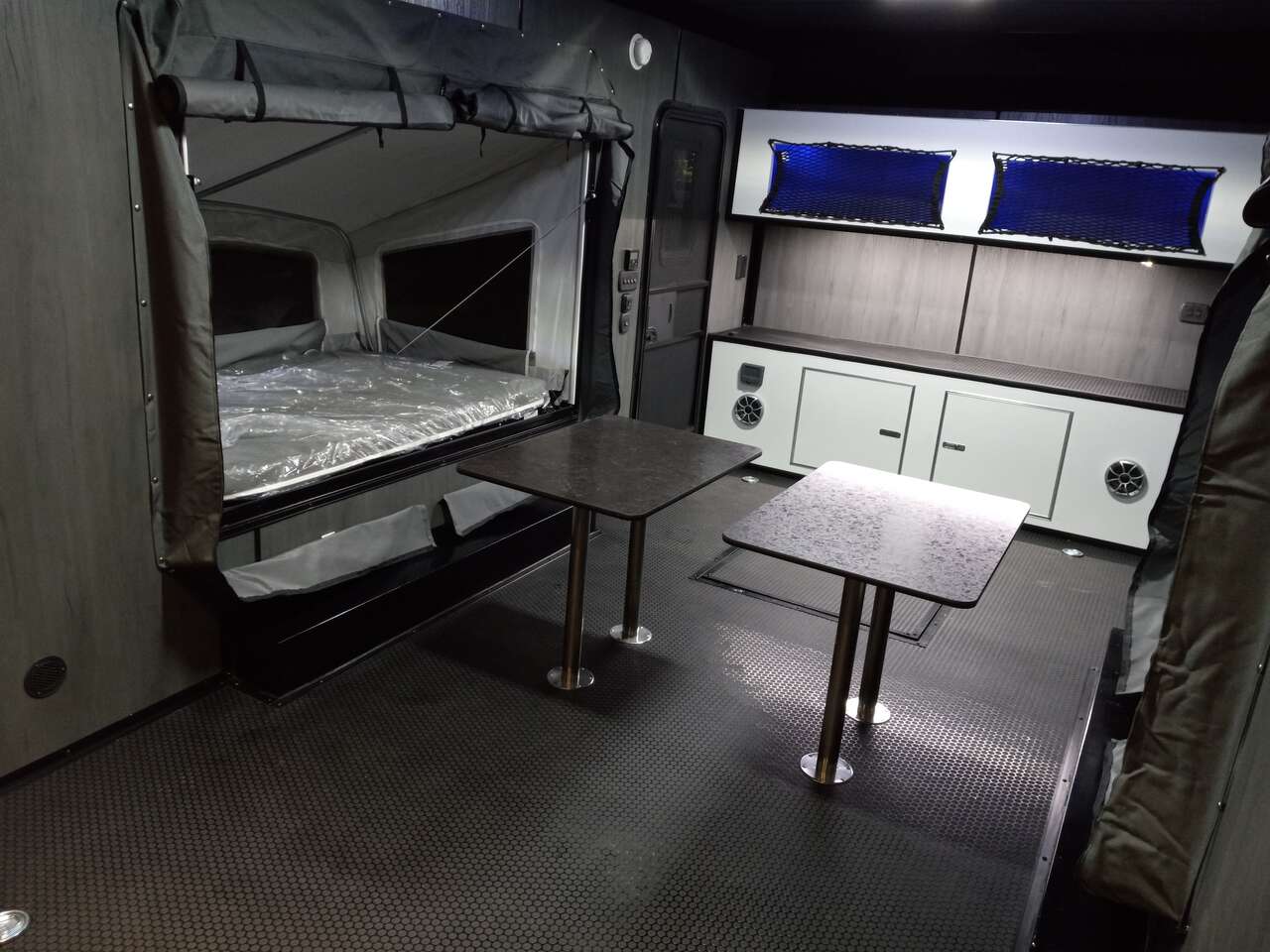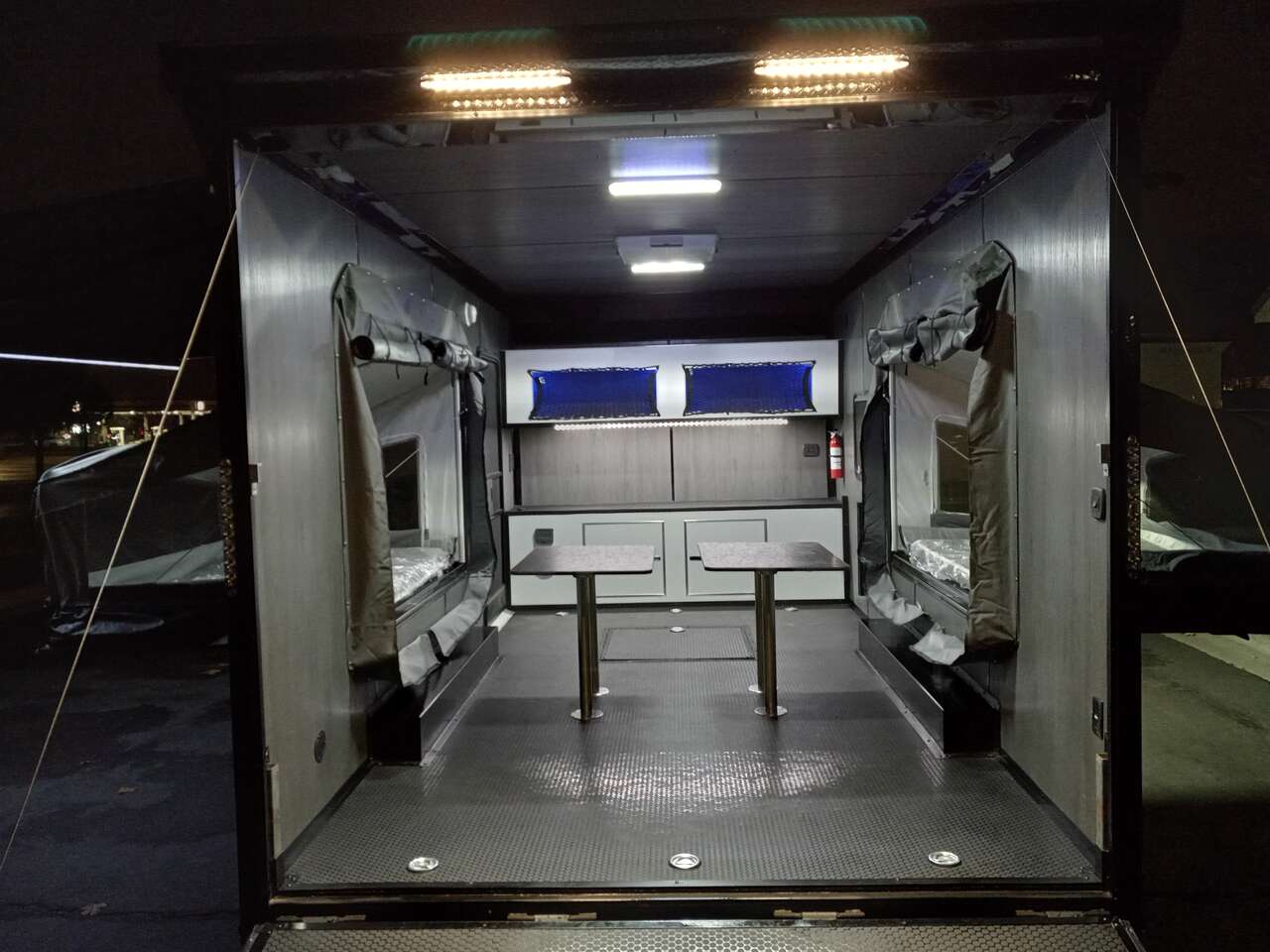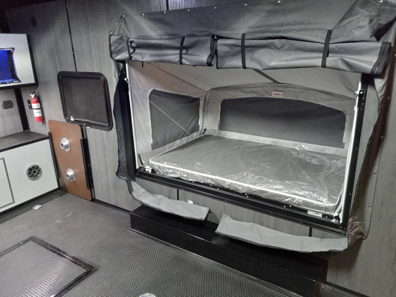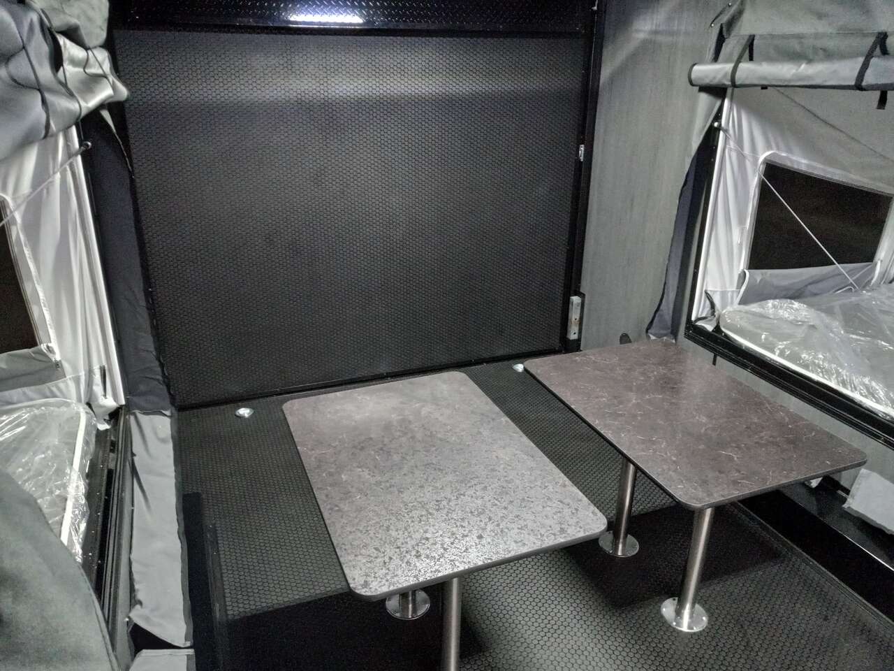 LIMITED TIME $259 A MONTH WITH ZERO DOWN WITH OUR SPECIAL LOCAL CREDIT UNION PARTNER!!! NO PRE-PAYMENT PENALTIES!!! NEW 8.5 WIDE MODEL!!! WILL FIT ANY STOCK SIDE BY SIDE UTV!!! RAYNGER PREMIUM OFF ROAD TOY HAULER CAMPER!!! 18 INCH GROUND CLEARANCE!!! OFF ROAD TIRES!!! FULLY INSULATED!!! HEATING AND A/C!!! WET SOUND STEREO!!! TWO FOLD OUT/POP OUT TENTS WITH MATTRESS!!! CARGO BASKET!!! LED LIT AWNING!!! 87 Inch Rear Entry Height/90 INCH INTERIOR HEIGHT!!! 90 Inch Rear Entry Width!!! Aluminum Ventilated Locking Generator Box!!! UPGRADED 5,200# TORSION AXLES!!! 14.2 Foot Long Garage Space!!! And Much MUCH MORE!!! Check out our Specs!!! Also available in 18 foot models. 18 Foot Models can have 3 Fold Out Beds/Pop Out Tents. 16 Foot and 18 Foot Models will fit ANY stock 4 Seater Side by Side • 6” I Beam Frame• Flat Top Design• Flat Front Design• Wall Posts 16” on Center• Cross Members 16” on Center• Roof Bows 16” on Center• Rust Inhibiting Z-Tech Protection on Chassis• Ameraguard on Tongue• Ameraguard on Rear Bumper• Ameraguard Around All Door Openings and Stepwell• Ameraguard Around Edges of Ramp Door• 3500 LB Spring Axles• 2-5/16” Coupler• One-Piece Aluminum Roof• ST235/75R15 Aluminum Wheels with Chrome Center Caps• 2000# Ramp Door with Eberhard Latch• 30” Tempered Glass RV Door with Screen Door• .030 Exterior Metal with Screwless Sides• 24” Black Stoneguard• 3” Black Bottom Trim• Sand Pad• Black Door Hold• 2.7mm Charcoal Textured Vinyl Ceiling • 9mm Charcoal Textured Vinyl Walls• 3/4” Engineered Wood Floor with Rubber Coin Overlay• (6) 1200 LB Floor D rings Installed with Backer Plates• LED Clearance Lights and Tail Lights• LED Back-up Lights• No Show Wheel Box• Spoiler with Toggle Switch• RV Step• 7’ Interior• (2) 17” Chrome Base Lights with Switch• (1) Black 17” Spot Light with Switch• (1) 30 Amp Panel with Marine Plug• A/C Unit with Heat Strip• (3) Interior Recepts• (1) Exterior Recept• 12V Battery and Charge Line• Prep for Backup Camera• Wet Sounds System• (3) Blue Interior Cabinet Lights• (1) 6’ Section of Flex Lights• Black ATP Rear Header and Hoop• Black ATP Fenders• Insulated Walls & Ceiling• Base Cabinets• Overhead Cabinets with Netting Over Compartments• Pop Out Tent• Black ATP Storage/Generator Box Mounted On Tongue SW094231 SW094231
