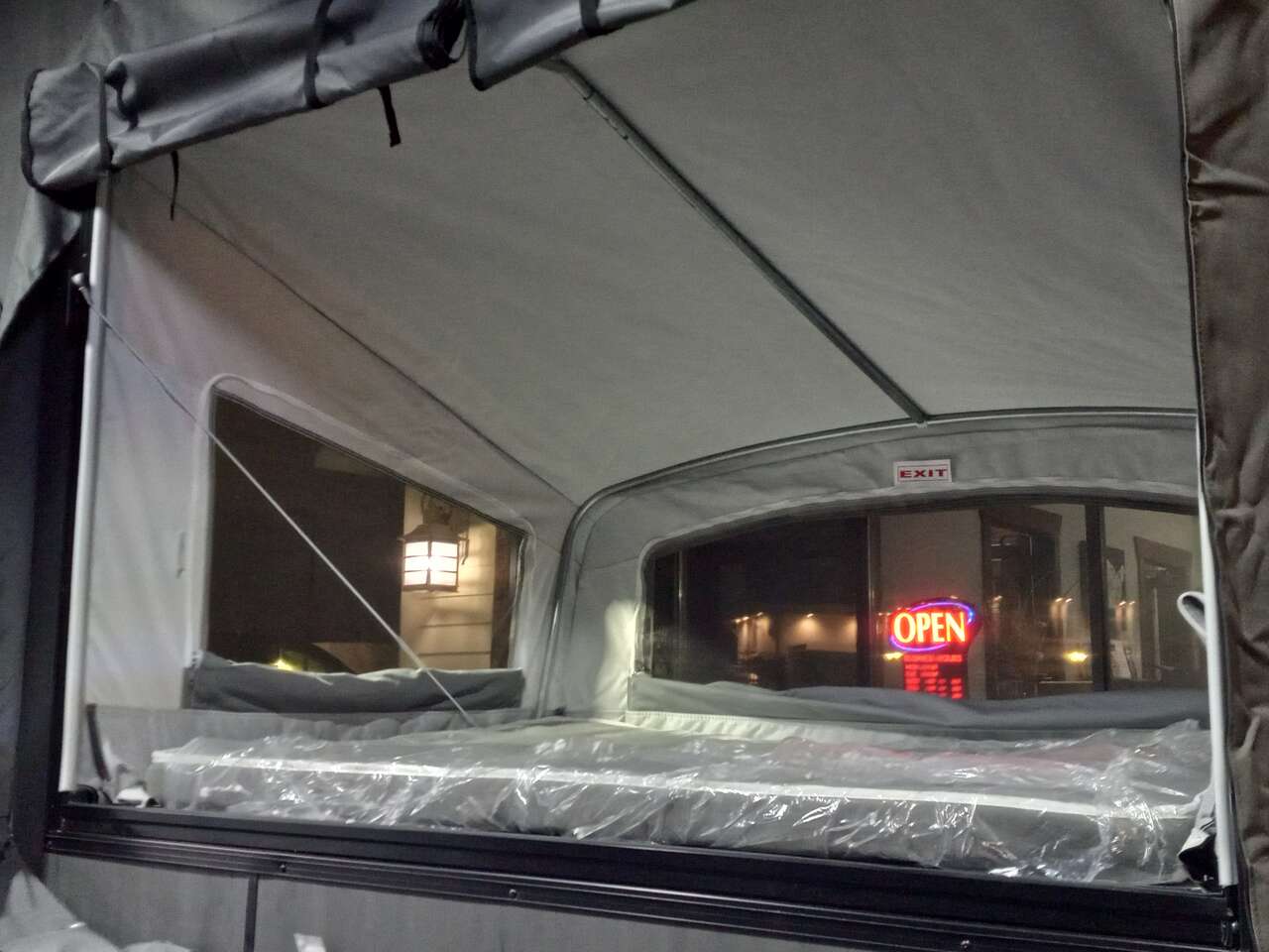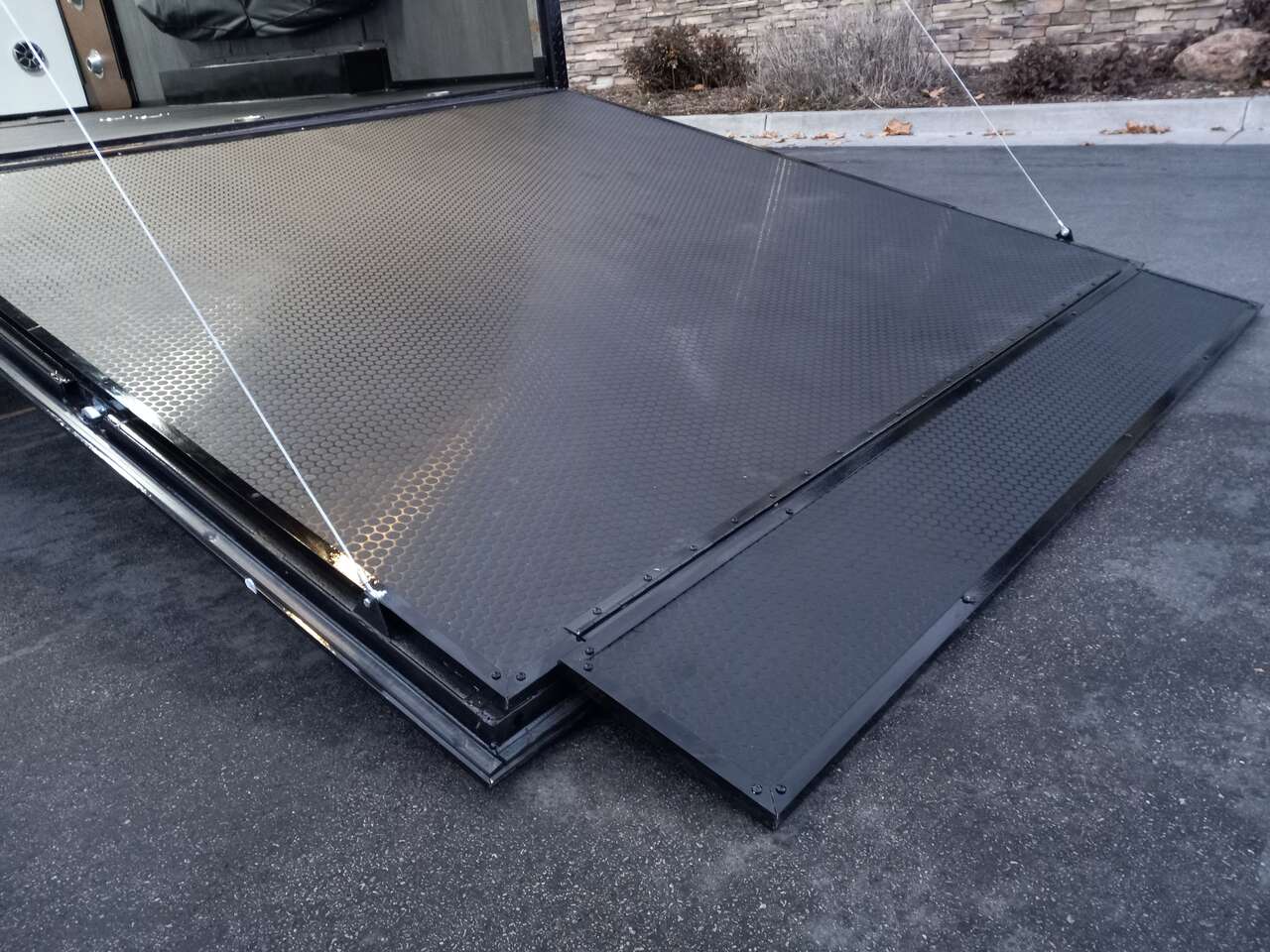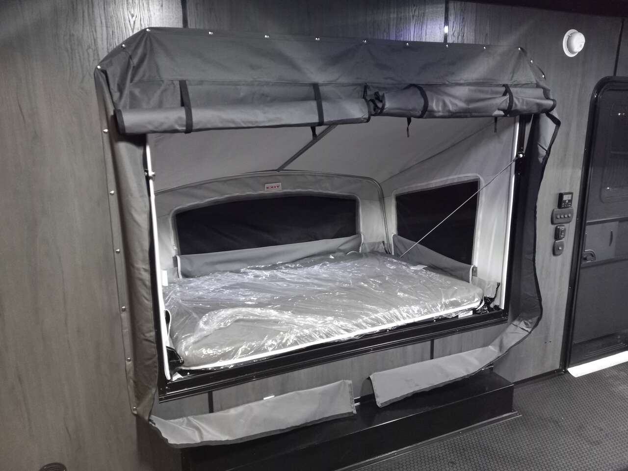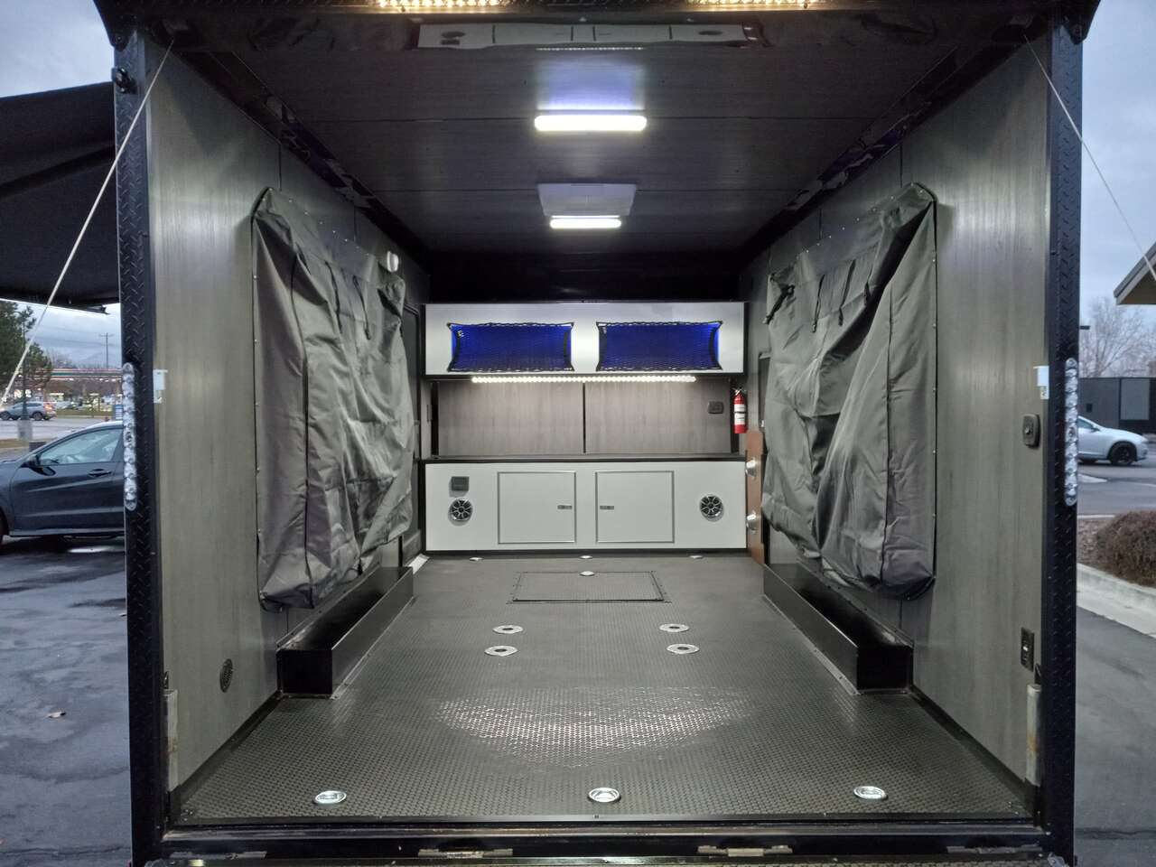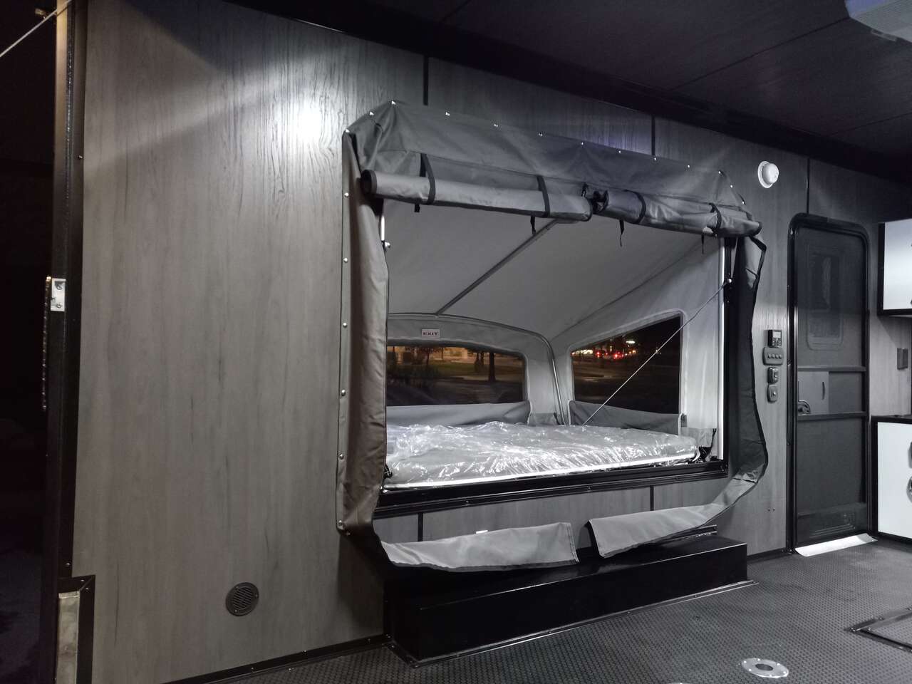 LIMITED TIME $259 A MONTH WITH ZERO DOWN WITH OUR SPECIAL LOCAL CREDIT UNION PARTNER!!! NO PRE-PAYMENT PENALTIES!!! NEW 8.5 WIDE MODEL!!! WILL FIT ANY STOCK SIDE BY SIDE UTV!!! RAYNGER PREMIUM OFF ROAD TOY HAULER CAMPER!!! 18 INCH GROUND CLEARANCE!!! OFF ROAD TIRES!!! FULLY INSULATED!!! HEATING AND A/C!!! WET SOUND STEREO!!! TWO FOLD OUT/POP OUT TENTS WITH MATTRESS!!! CARGO BASKET!!! LED LIT AWNING!!! 87 Inch Rear Entry Height/90 INCH INTERIOR HEIGHT!!! 90 Inch Rear Entry Width!!! Aluminum Ventilated Locking Generator Box!!! UPGRADED 5,200# TORSION AXLES!!! 14.2 Foot Long Garage Space!!! And Much MUCH MORE!!! Check out our Specs!!! Also available in 18 foot models. 18 Foot Models can have 3 Fold Out Beds/Pop Out Tents. 16 Foot and 18 Foot Models will fit ANY stock 4 Seater Side by Side • 6” I Beam Frame• Flat Top Design• Flat Front Design• Wall Posts 16” on Center• Cross Members 16” on Center• Roof Bows 16” on Center• Rust Inhibiting Z-Tech Protection on Chassis• Ameraguard on Tongue• Ameraguard on Rear Bumper• Ameraguard Around All Door Openings and Stepwell• Ameraguard Around Edges of Ramp Door• 3500 LB Spring Axles• 2-5/16” Coupler• One-Piece Aluminum Roof• ST235/75R15 Aluminum Wheels with Chrome Center Caps• 2000# Ramp Door with Eberhard Latch• 30” Tempered Glass RV Door with Screen Door• .030 Exterior Metal with Screwless Sides• 24” Black Stoneguard• 3” Black Bottom Trim• Sand Pad• Black Door Hold• 2.7mm Charcoal Textured Vinyl Ceiling • 9mm Charcoal Textured Vinyl Walls• 3/4” Engineered Wood Floor with Rubber Coin Overlay• (6) 1200 LB Floor D rings Installed with Backer Plates• LED Clearance Lights and Tail Lights• LED Back-up Lights• No Show Wheel Box• Spoiler with Toggle Switch• RV Step• 7’ Interior• (2) 17” Chrome Base Lights with Switch• (1) Black 17” Spot Light with Switch• (1) 30 Amp Panel with Marine Plug• A/C Unit with Heat Strip• (3) Interior Recepts• (1) Exterior Recept• 12V Battery and Charge Line• Prep for Backup Camera• Wet Sounds System• (3) Blue Interior Cabinet Lights• (1) 6’ Section of Flex Lights• Black ATP Rear Header and Hoop• Black ATP Fenders• Insulated Walls & Ceiling• Base Cabinets• Overhead Cabinets with Netting Over Compartments• Pop Out Tent• Black ATP Storage/Generator Box Mounted On Tongue SW094231 SW094231