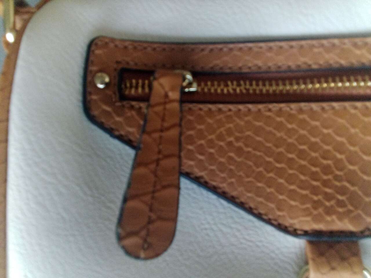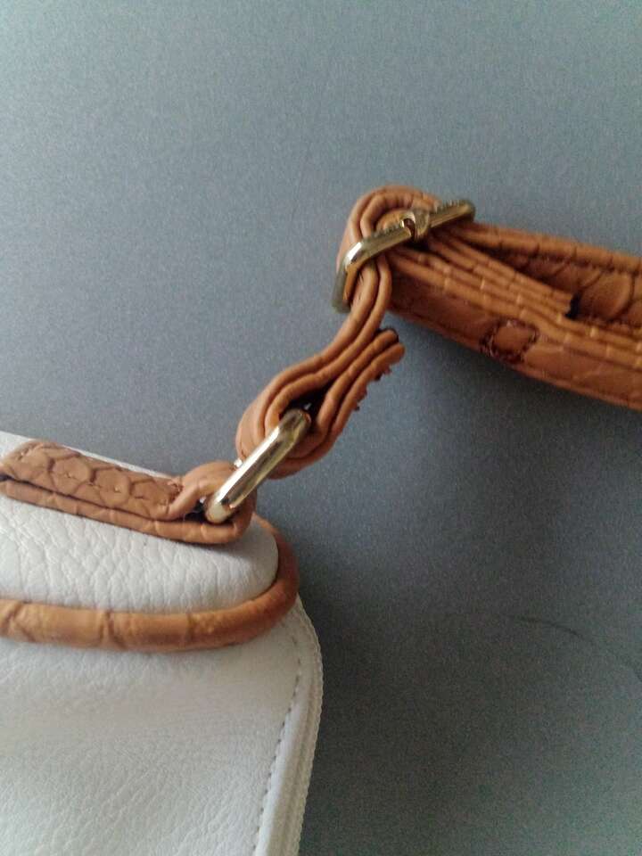 Elevate your style with this new without tags stunning white handbag from Apt. 9. Measuring 9 inches wide and 6 inches tall, this small shoulder bag features three compartments for ample storage space. The exterior is made of high-quality faux leather with a snake skin character and gold hardware accents. The bag is adorned with a brown faux leather handle/strap and a zip closure for secure and stylish closure. The interior is lined with soft polyester material in white, complementing the exterior color. This solid pattern handbag is perfect for any occasion and is a must-have for any fashion-forward woman. Add this Apt. 9 handbag to your collection today and make a statement wherever you go.