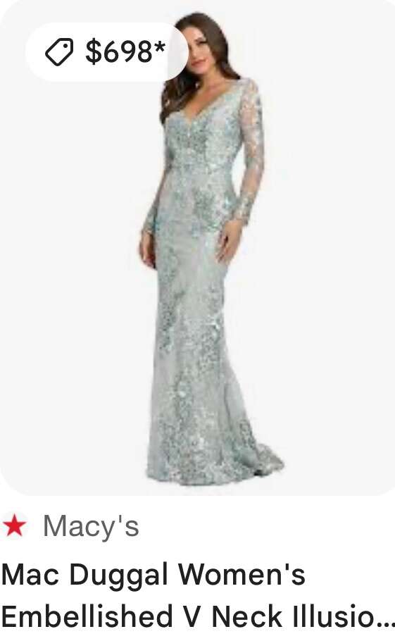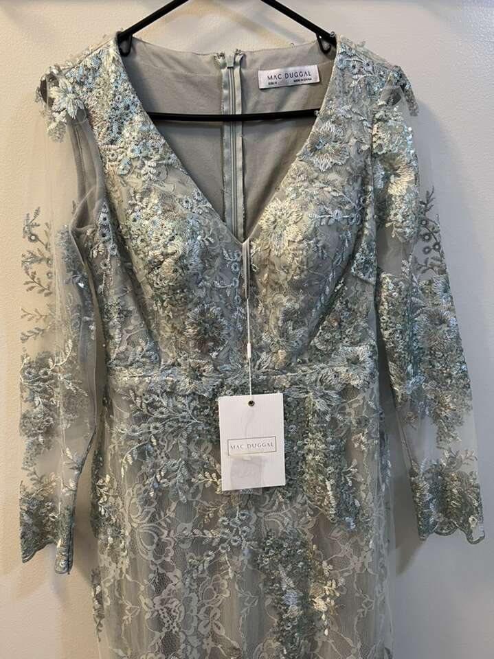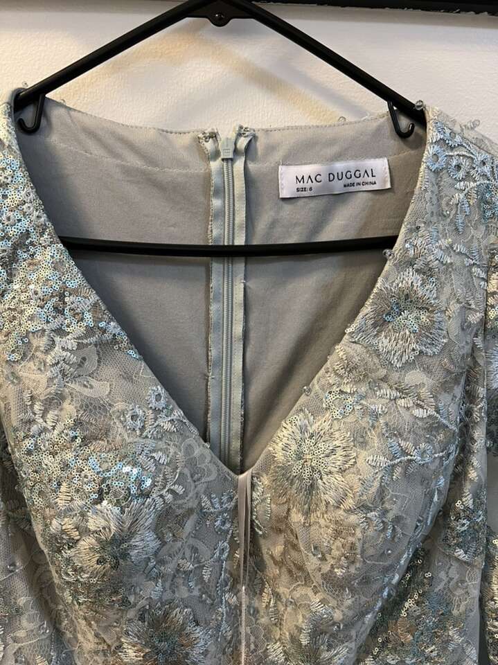 Mac Duggal Women's Embellished V Neck Illusion Long Sleeve Gown SIZE 6 brand new never used smoke and pet free home
