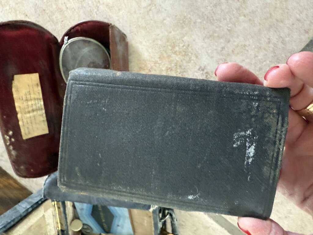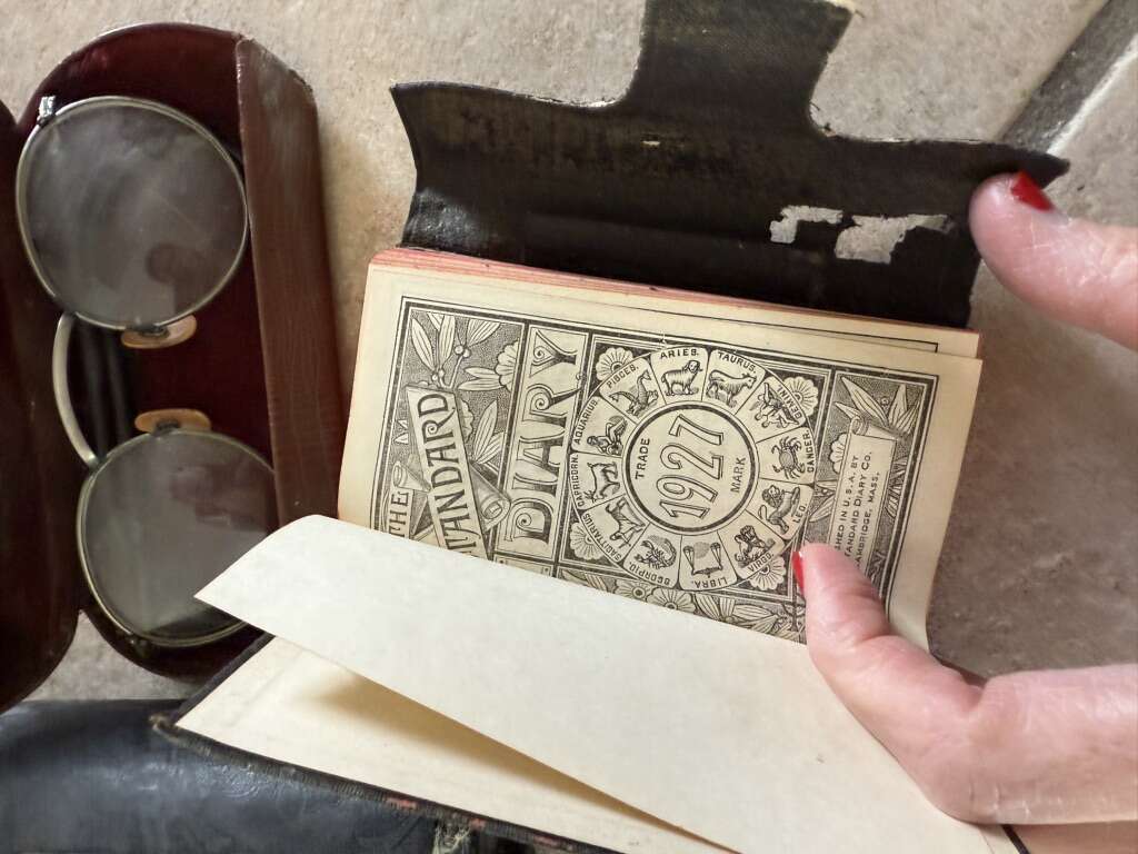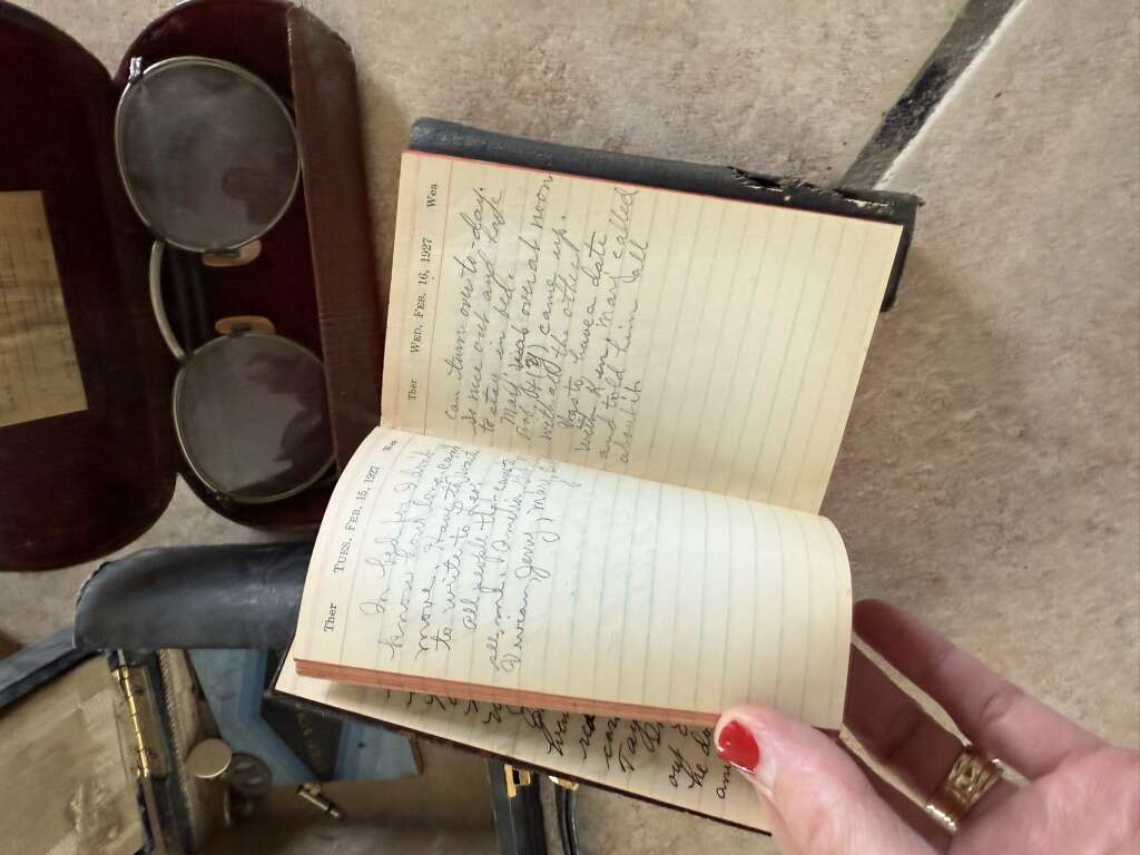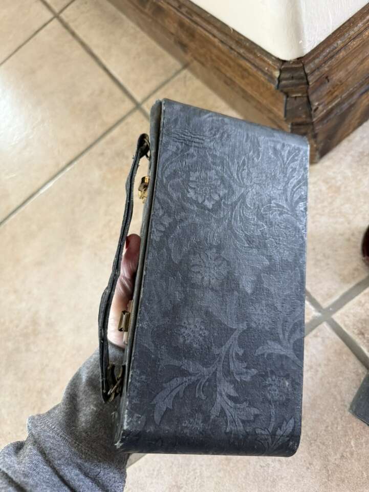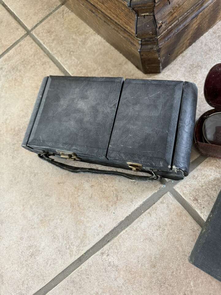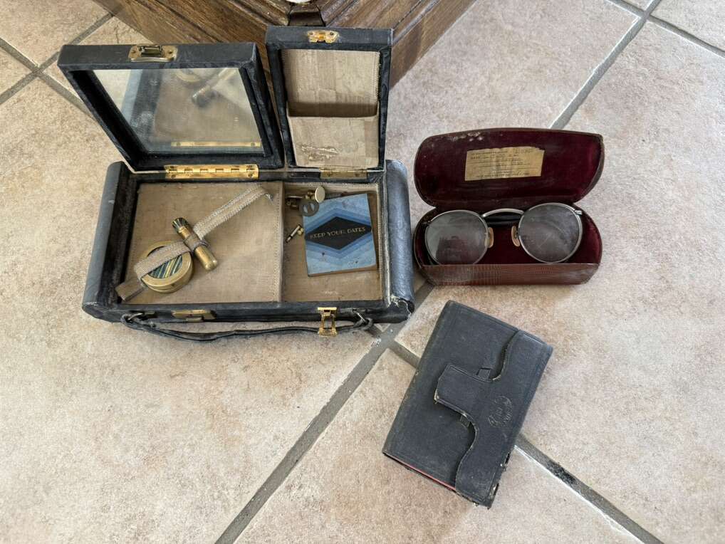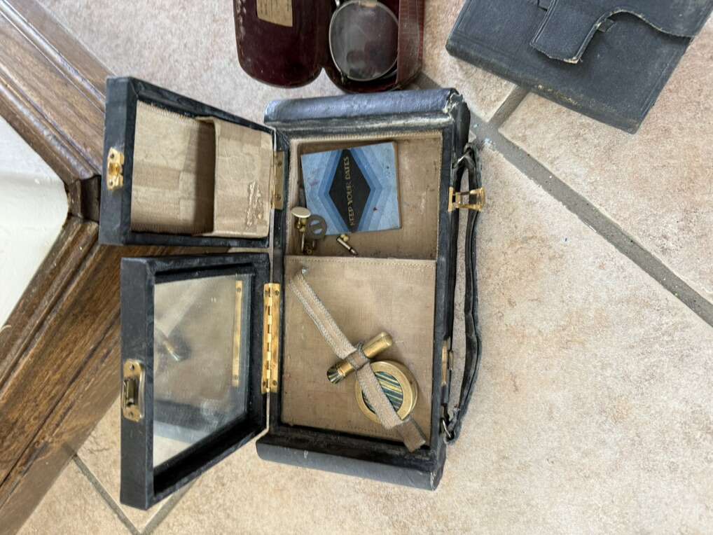 Vintage antique set of metal makeup containers, 1927 journal glasses