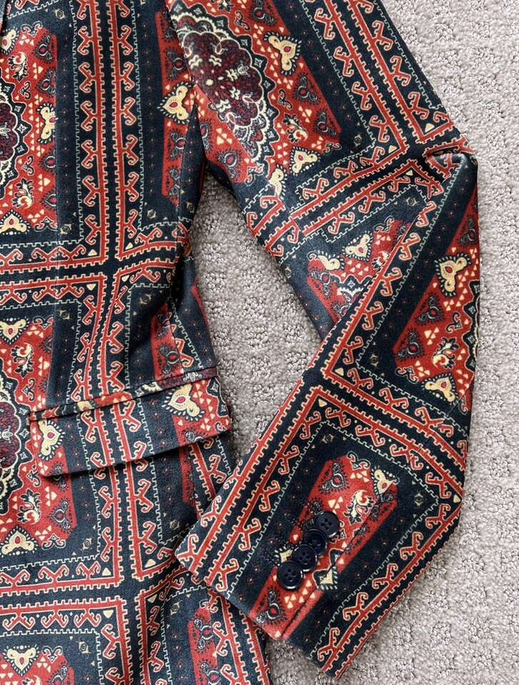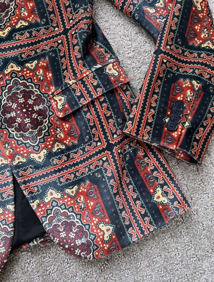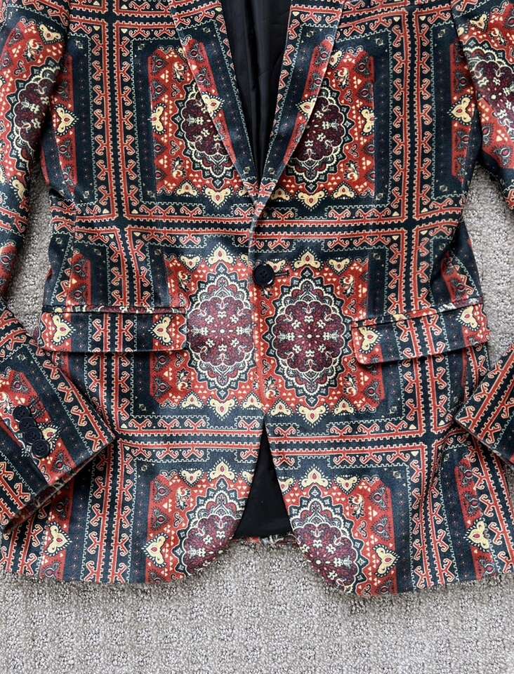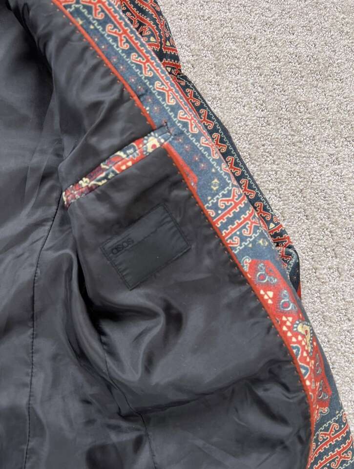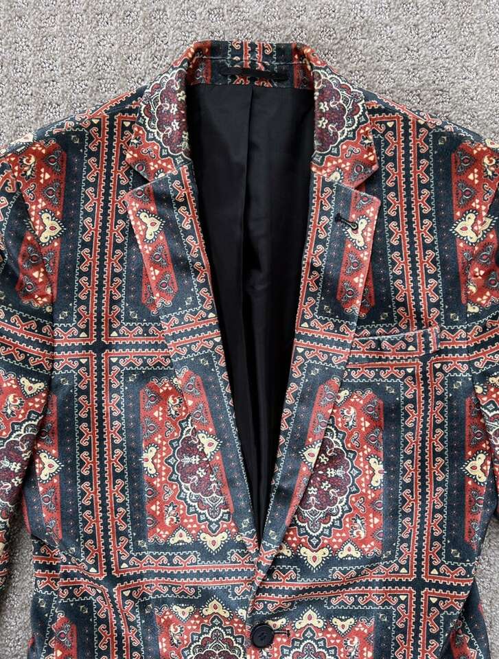 VenmoASOS Men’s Velvet Blazer I can’t find the size tag, but it measures 18 inches from pit to pit laying flat. My husband is usually a size small or 38 inch chest and this fits him perfect. Only worn once or twice. He doesn’t dress up anymore. Cash or Venmo. Will hold with Venmo payment.