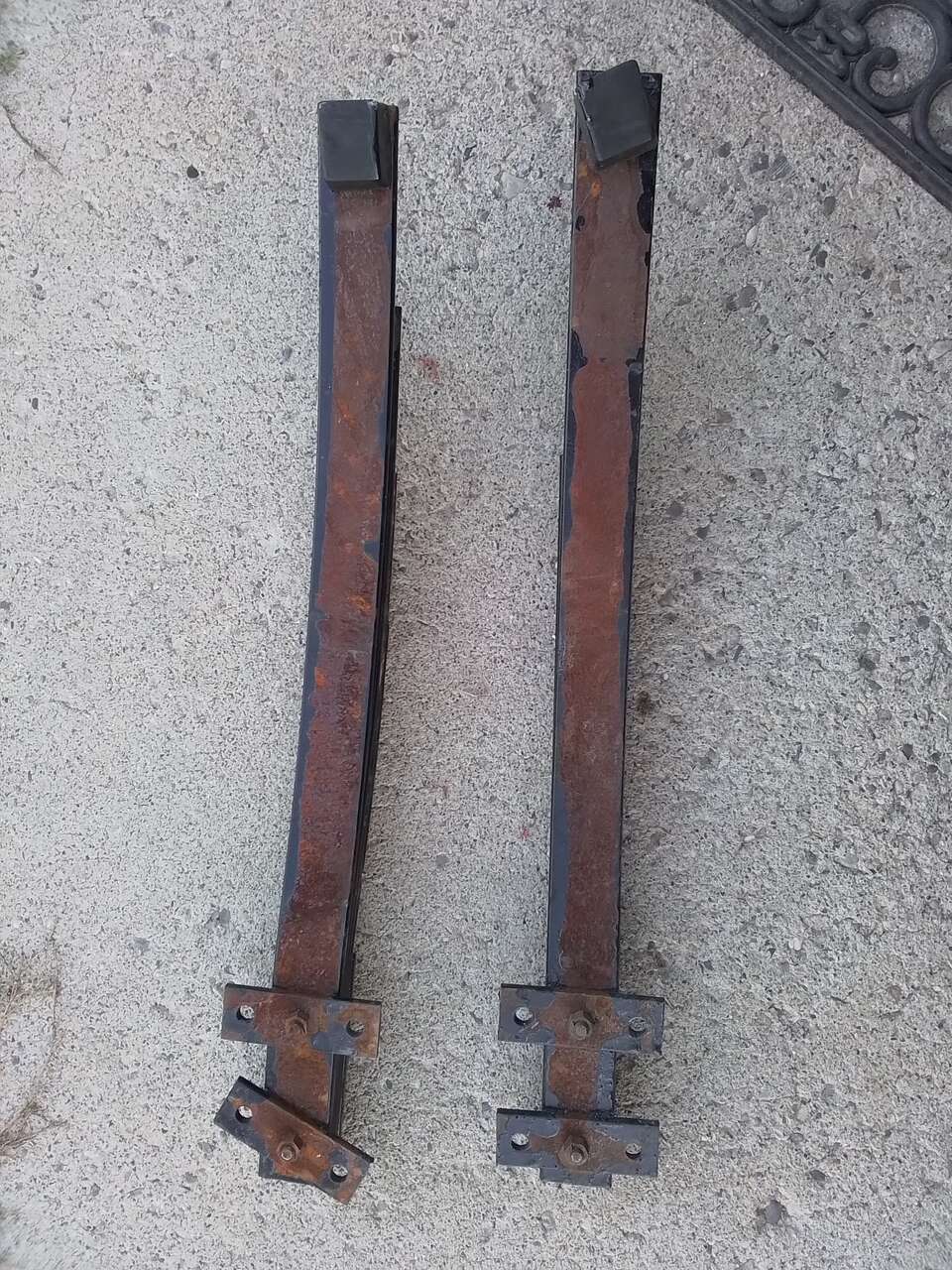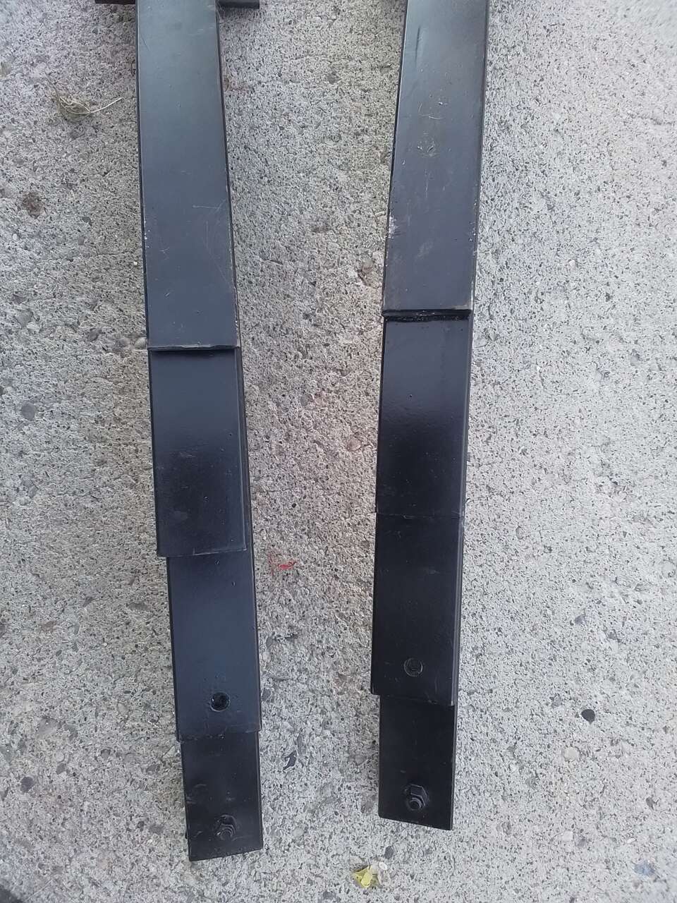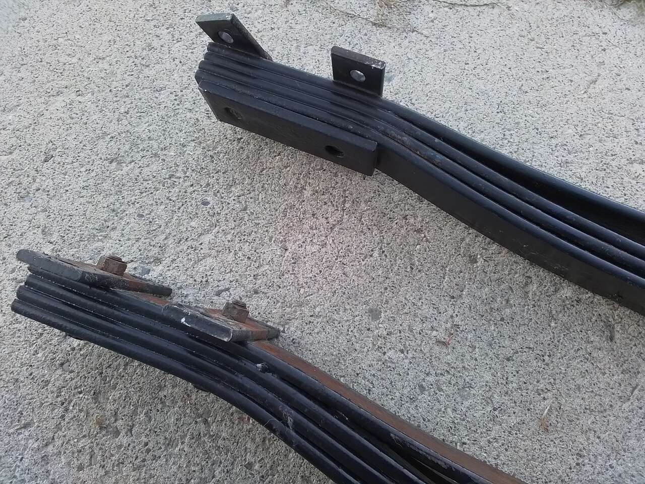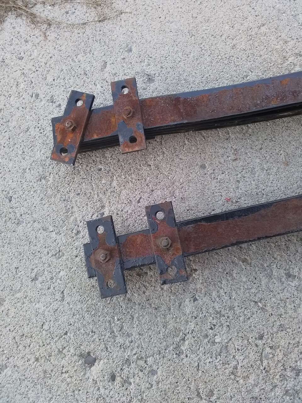 These are overload load leveler helper springs for the rear axel. I have had these a long time and did not use them. I believe I took them off from Chevy truck but not really sure, probably 67-72 or 79-87 squarebody. I don't remember the year but I have included the measurements. Total length 32 1/2", width 2 1/4". Leaf spring bracket end to end measures 5". Leaf spring bracket center to center bolt measures 3 1/2". Leaf spring width measures 1 3/4". This is heavy metal.