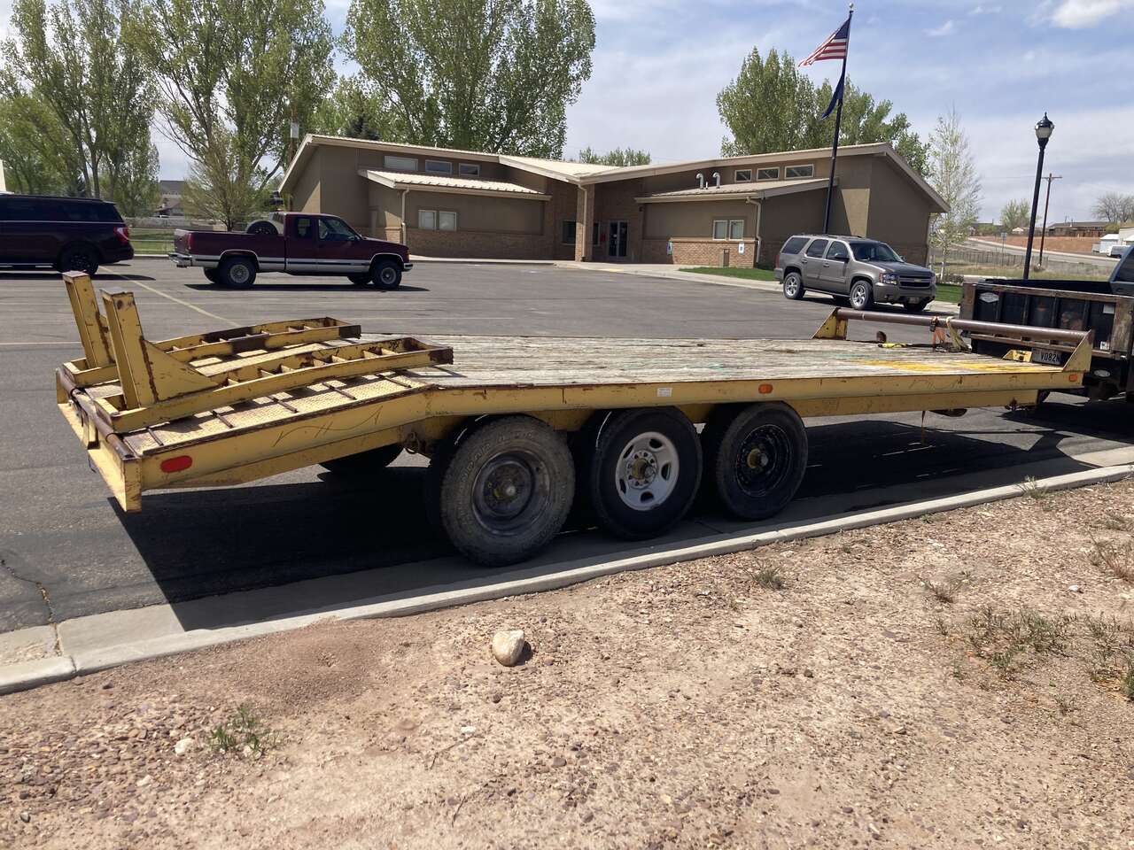 I have for sale a 18000 lb 22-foot equipment trailer. IF THIS ADD IS STILL UP IT IS STILL AVAILABLE. The flat deck part is 18' long and the drop tail where the ramps fold up are 4' long with 22' overall length. It has the pintle hitch and is a bumper pull trailer. It has 3 axles and they are 8 Lug 16" tires. It could use some TLC for sure. I delivered a backhoe to Duchesne with it last year and picked up a 1/2 ton Tahoe from Casper Wyoming with no issues. The deck needs new wood. The jack does not work right now but can be fixed or replaced. Also, the cable to the trailer lights has been cut, so that will need to be replaced, as well. I drove it from Casper with no brakes and no lights without any issues, but they will need to be replaced before you do any serious hauling. The trailer will be fine to haul to your home empty. I am willing to deliver anywhere for $1.50 per mile round trip. Example: 100 miles one way would be 200 miles round trip would and be $300 for delivery. Sold as is cash only. With a little work and some paint you can have a nearly new trailer that will give you years of trouble-free hauling. Trailer was very dependable. The previous owner never took care of it. I have a clean, clear UTAH TITLE in hand. NO TRADES PLEASE.Serious buyers only. CASH ONLY NO TRADES. NO CLOWNS, NO BOZOS. Do NOT tell me you are on your way without giving me your number. If you are not willing to talk to me on the phone like an adult, do not bother me! Thank you.