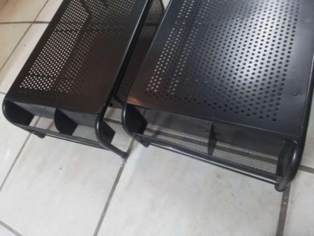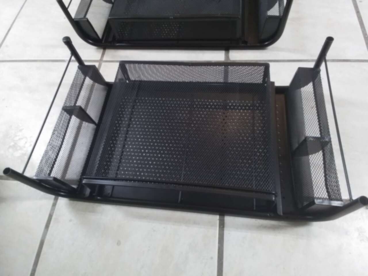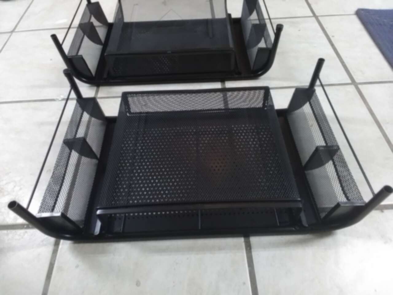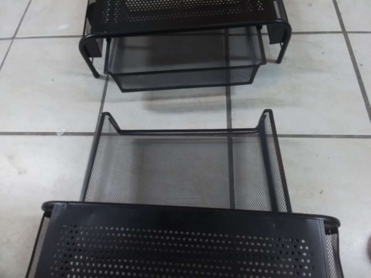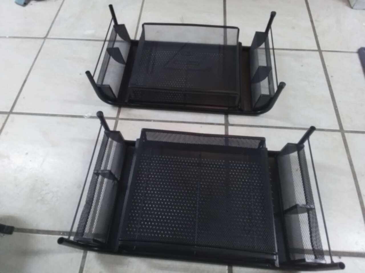 Barely used. 1 each for $ 15. I have 2 pieces for $30. Measures 20"x11". Had a sliding compartments and 2 compartments on each side. 5 1/2" tall.