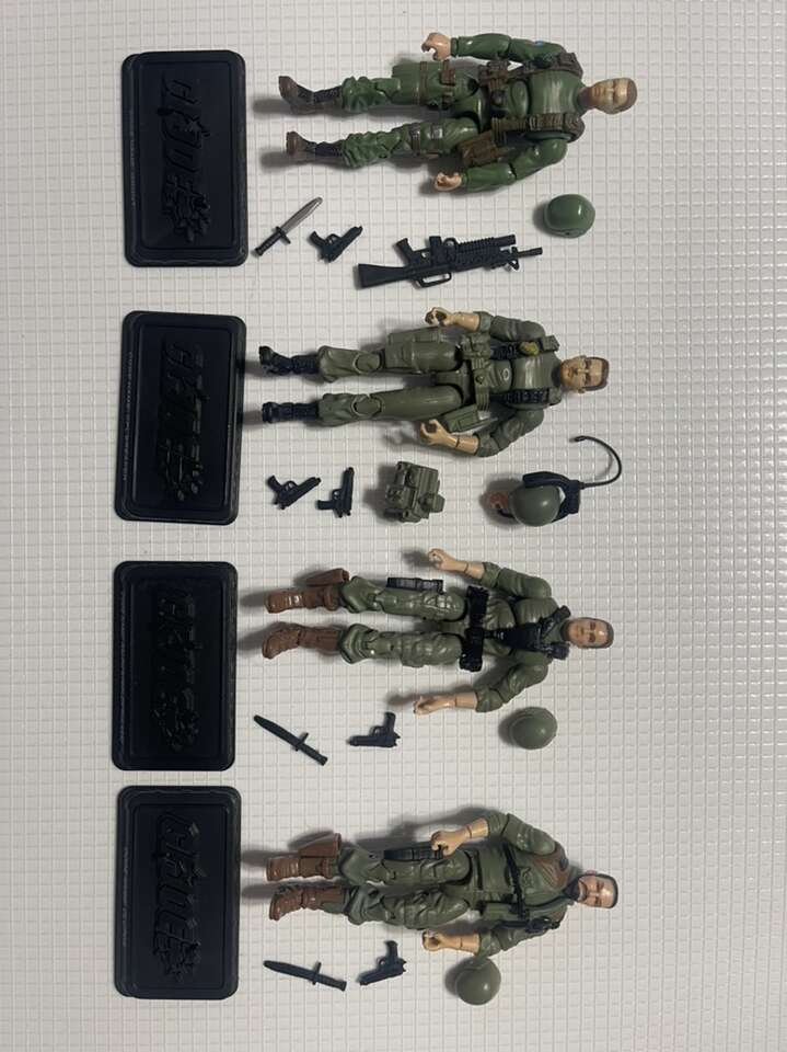 ZelleGI Joe 25th anniversary original green shirt team and vehicles. Includes 13 Joe original team