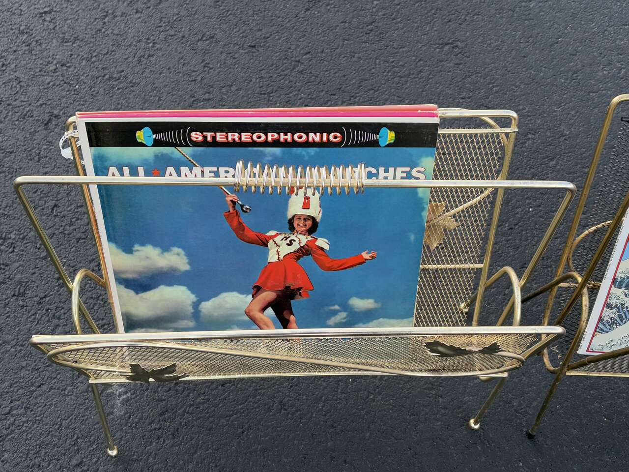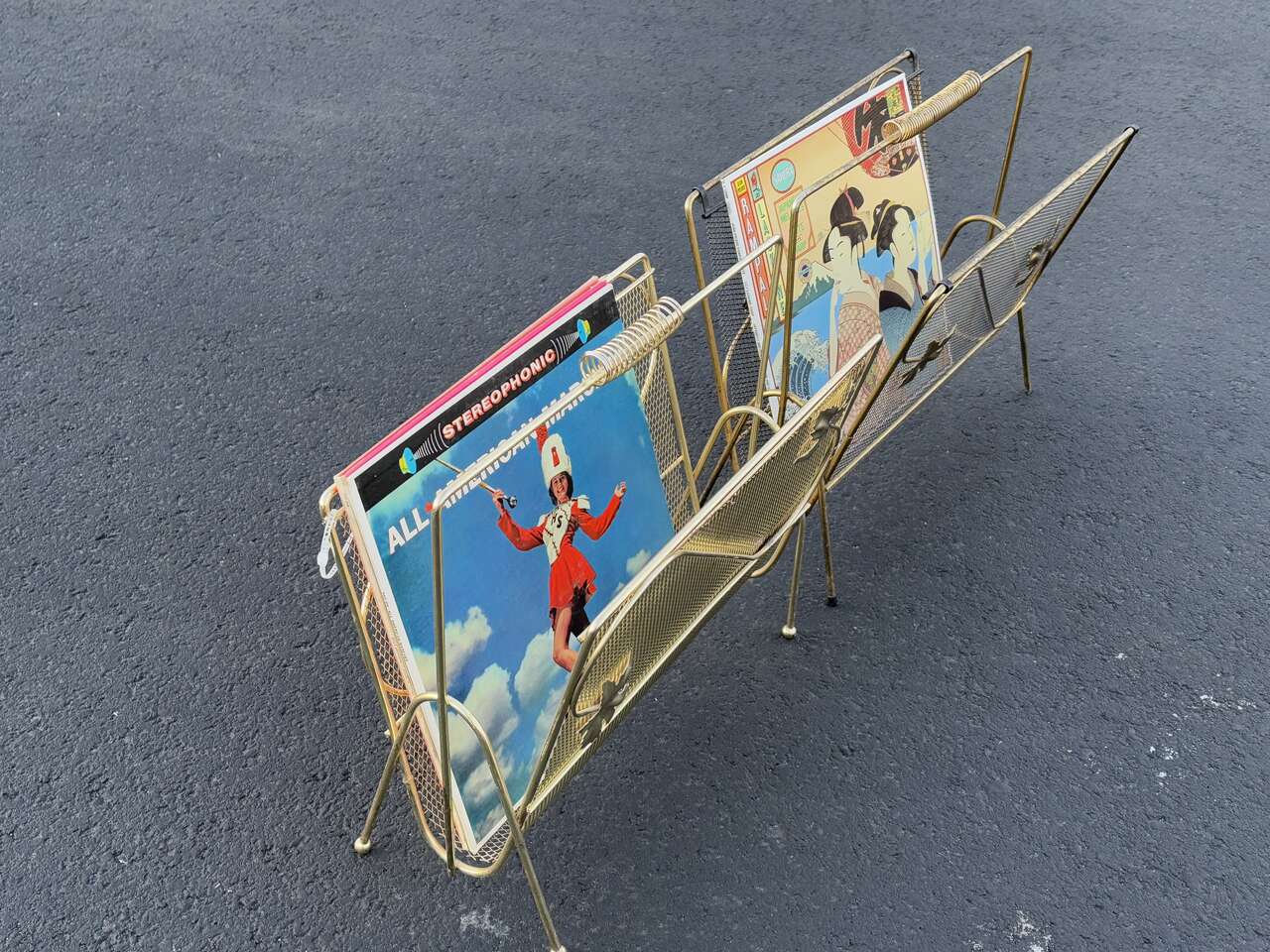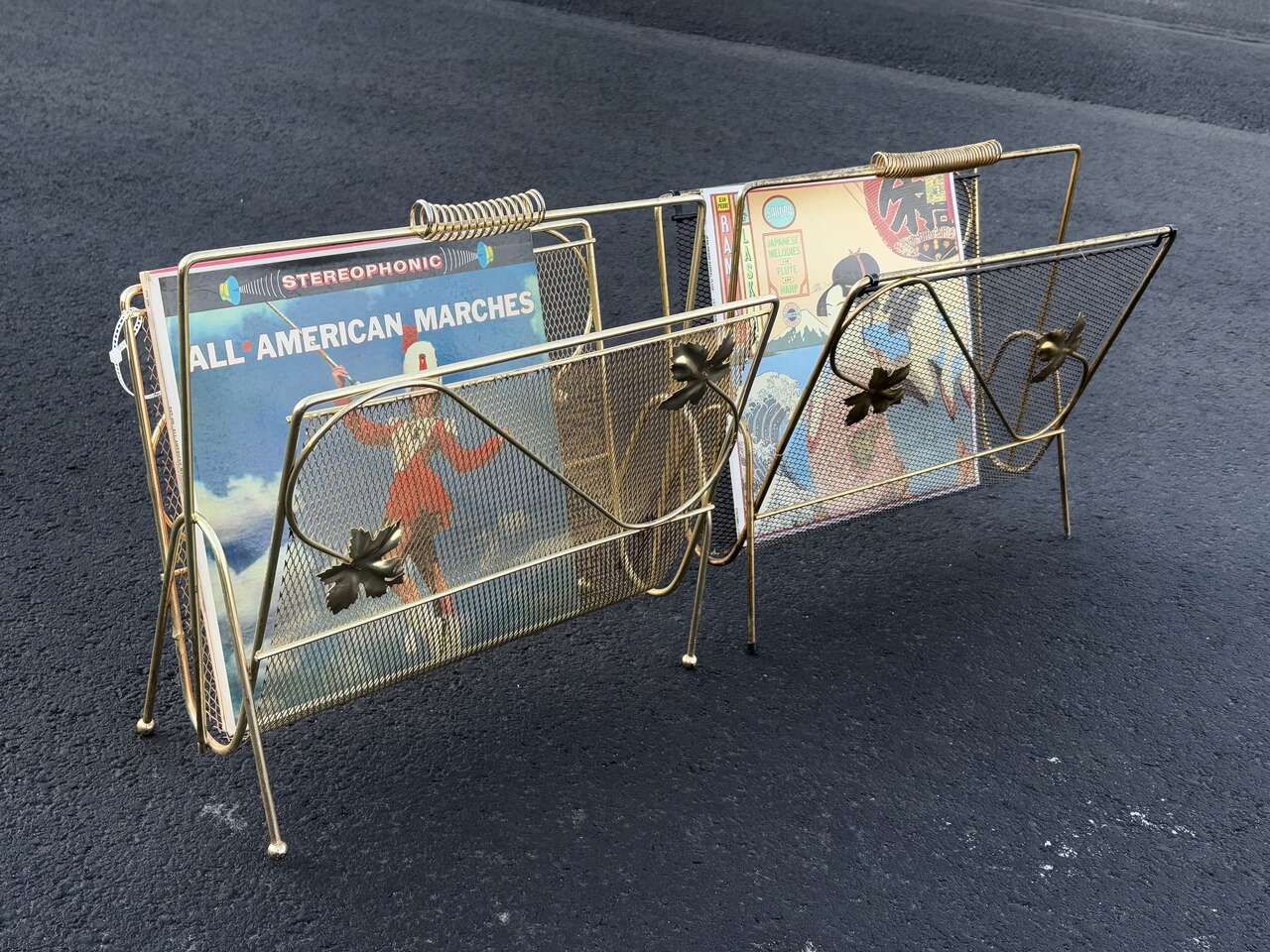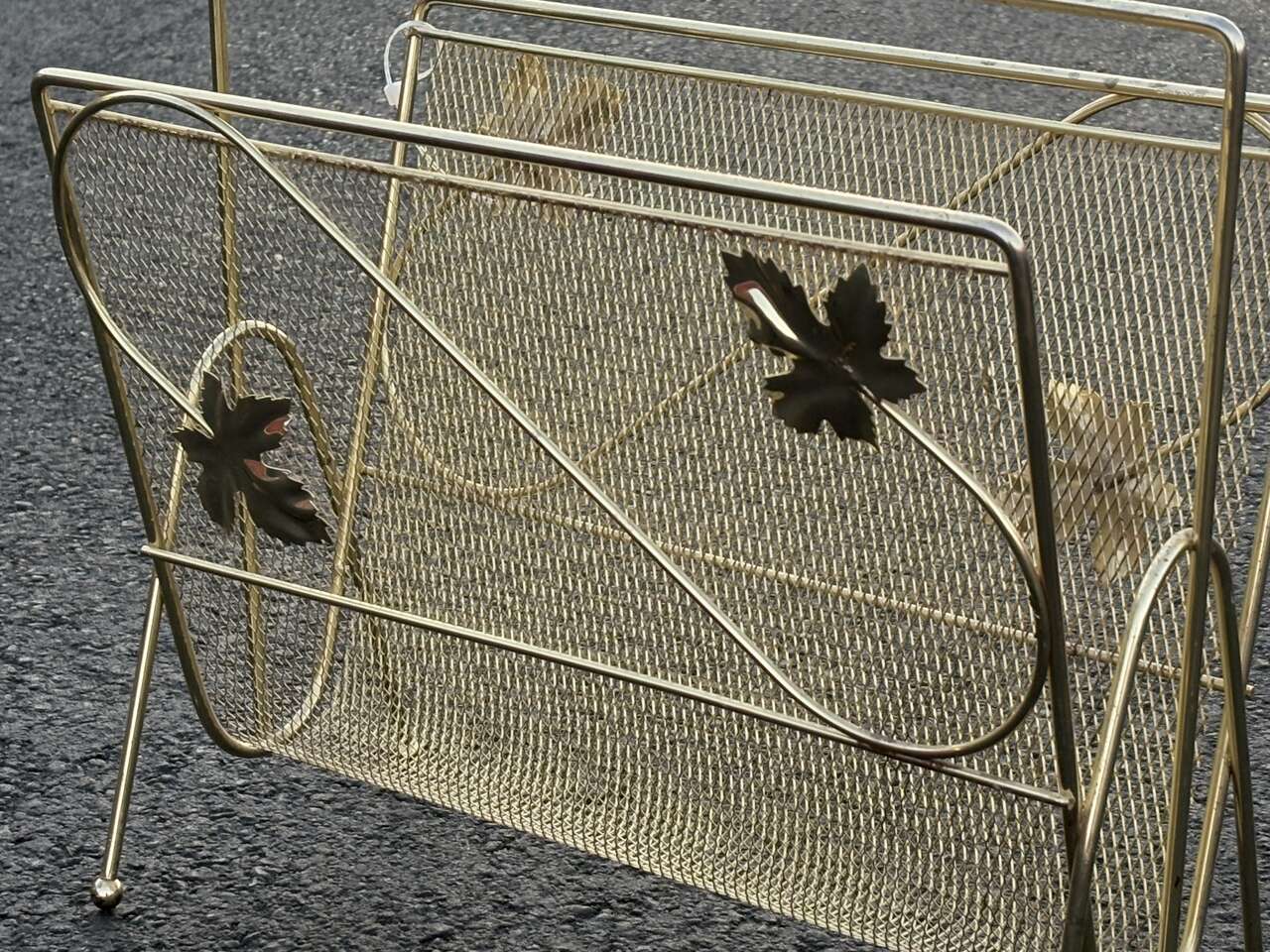 Vintage mid century modern magazine, Vinyl record holder Gold oak leafs. I currently habe two of this style available $45 ea