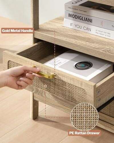 Retailer's Description: Delicate & Cute Design: The entire night stand adopts a curved design, rounded and cute, which is a big upgrade to the appearance of the bedside table, With PE rattan on the drawer, not only natural and charming but also durable and easy to clean, ideal for a natural airy bedroom feel by day and the warm tones will make it cozy by night