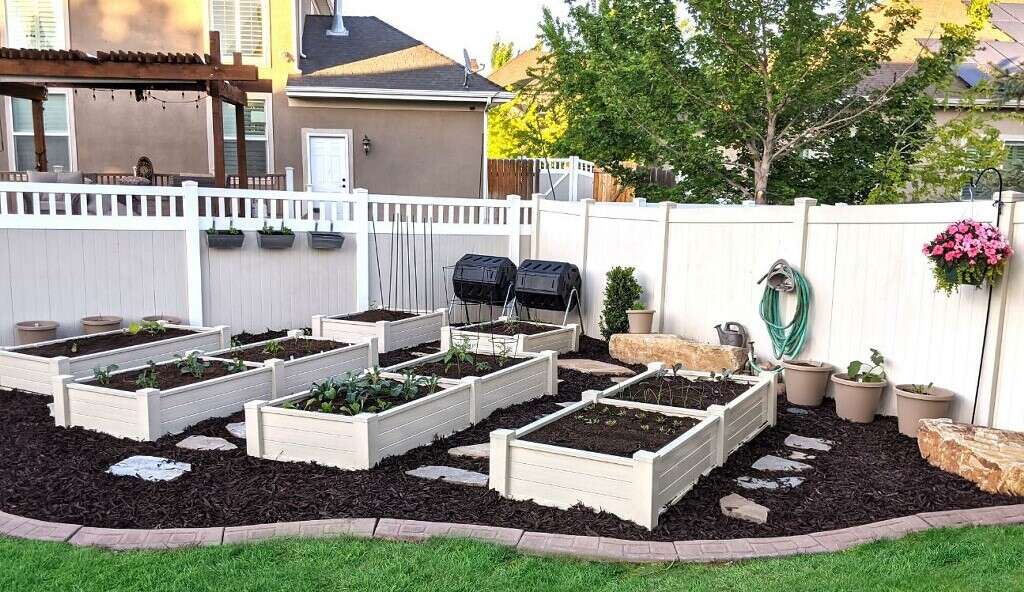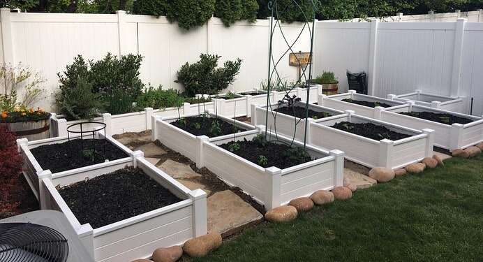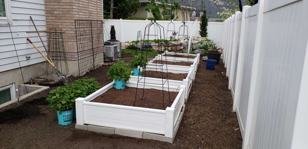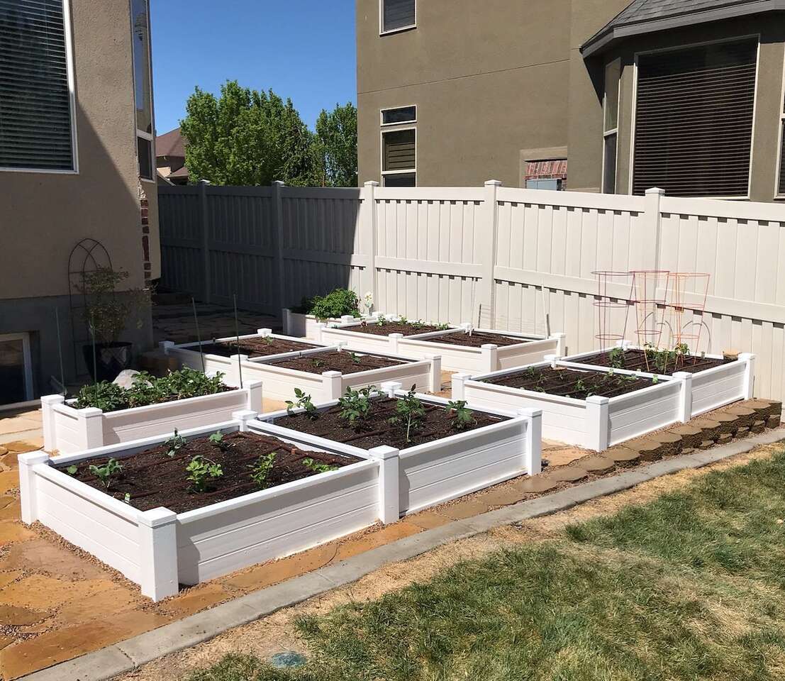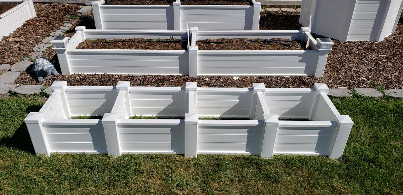 Vinyl Garden boxes now available with our patented one piece 12" sidewall panel that is designed for this specific application with added baffles for strength. Constructed to last for decades, our planters will never bow or change shape like the ones you see made out of ranch rail. Wood rots, metal oxidizes, but vinyl will last you 50/60 years. Install once, and your done for a lifetime. One of our gardens has been in over 25 years with no degradation and expected to last another 25 years. Vinyl doesn't rot, mold, splinter, degrade or draw unwanted pests. Avalilable colors: white, tan and adobe. Free delivery and garden consulataion for all orders within the Salt Lake valley. Planters are delivered fully assembled. Any size available. See our catalogue at ezgatesngardens.com