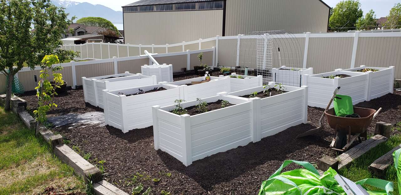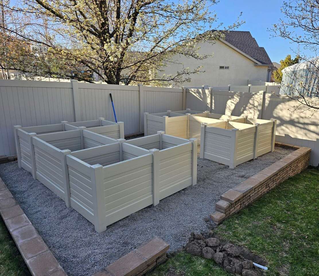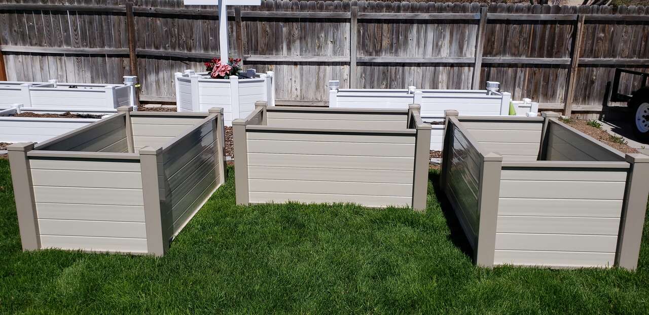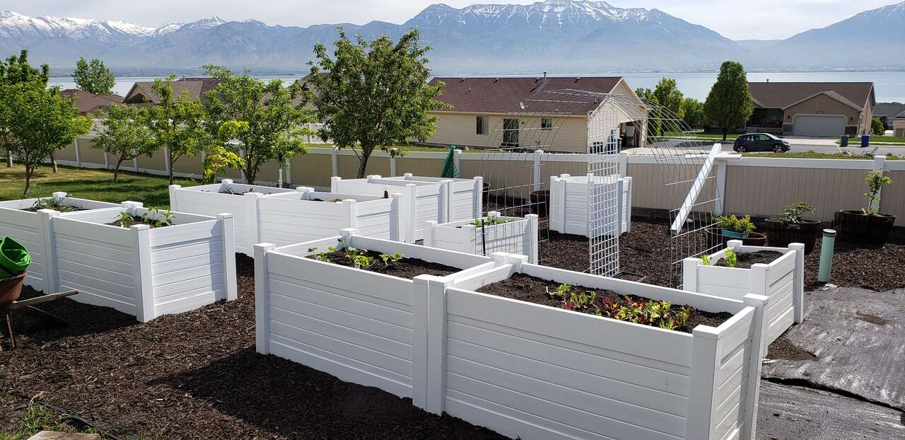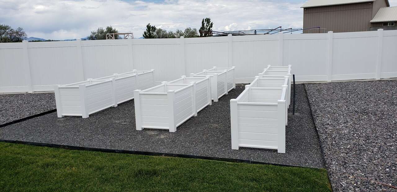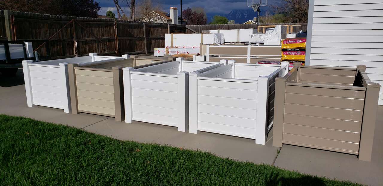 Vinyl Garden boxes now available in taller options. We offer 18", 24" and 30" high planters. Our vinyl garden boxes will never bow or change shape like the ones you see made out of ranch rail and are constructed to last a lifetime. For taller planters, we thermal bond all pieces together to create a one piece sidewall panel that will maintain its design forever. Wood rots, metal oxidizes, but vinyl will last you 50/60 years. Many sizes available. Free delivery and garden consulataion for all orders within the Salt Lake valley. Planters are delivered fully assembled. See our catalogue at ezgatesngardens.com