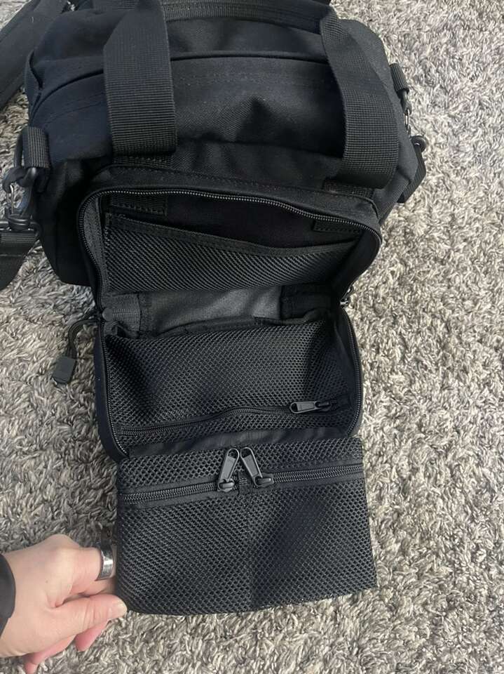 VenmoBlack, very gently used. Used it as a med kit that left in my car. No rips, stains or major signs of wear. Retail: $48
