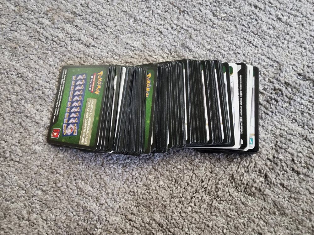 200 Pokemon code cards from various sets.