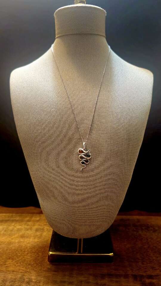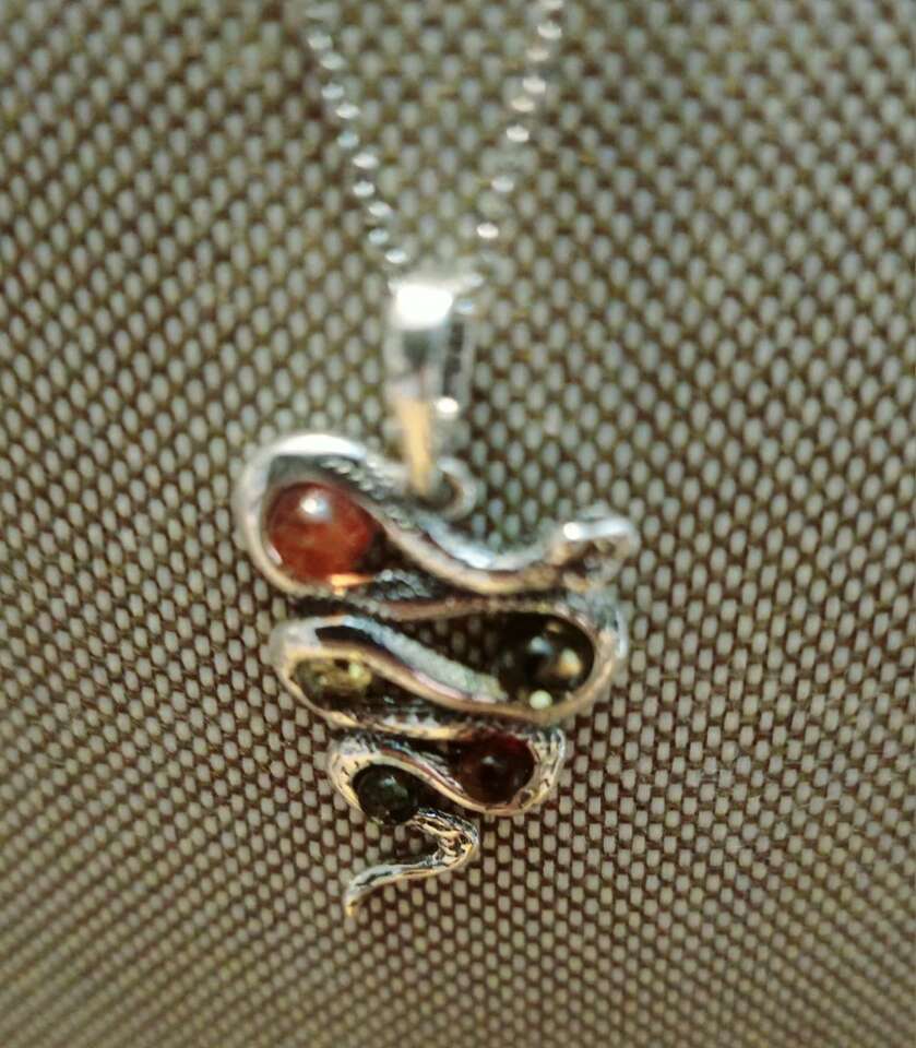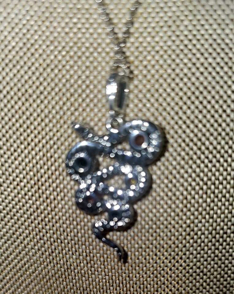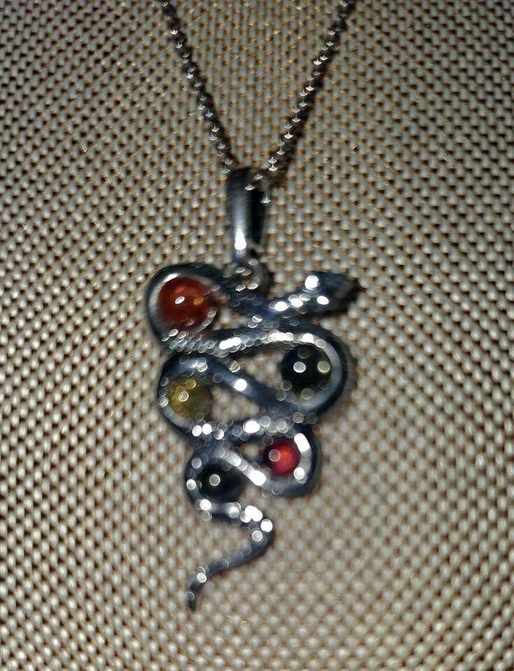 Shiny vintage jeweled Sterling Silver serpent pendant.