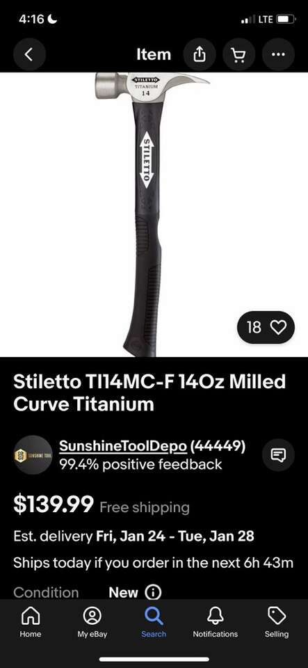 IF THE ADD IS UP ITS AVAILABLE If you want yard sale prices then go to a yard sale. New stiletto milled face framer. Well balanced and comfortable in the hand. Super lightweight and easy to swing. They really do live up to the hype. I’ve already got one and absolutely love it but don’t need two. These range from 165-204 on eBay and amazon. Cash only. In person. No electronic payment
