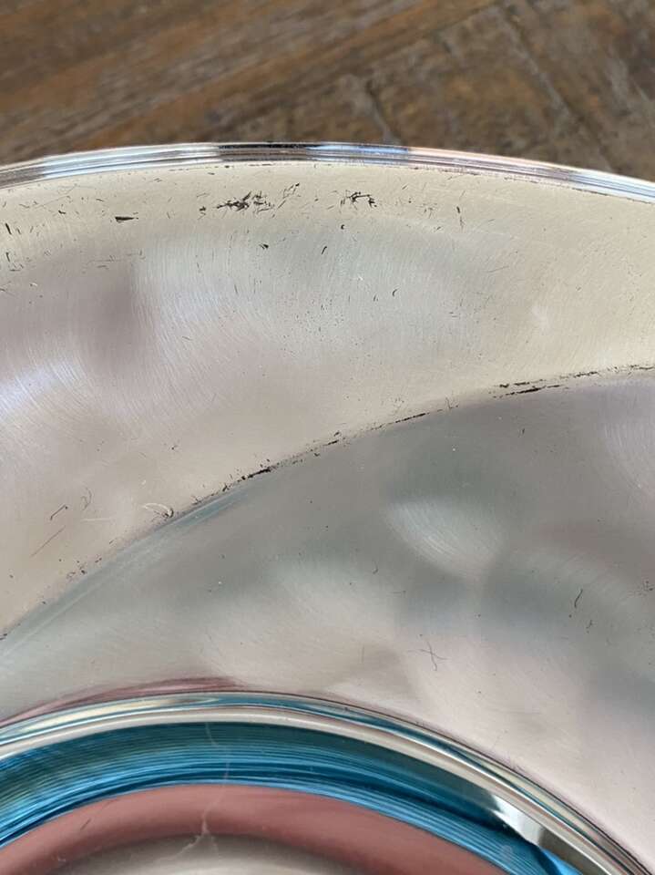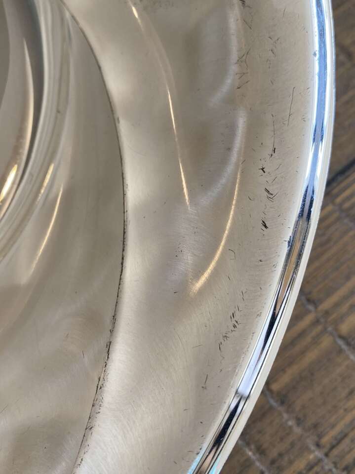 Footed bowl made in Germany. 10 3/4” Dia X 2 1/3” high. It has some scratches as shown in pictures.