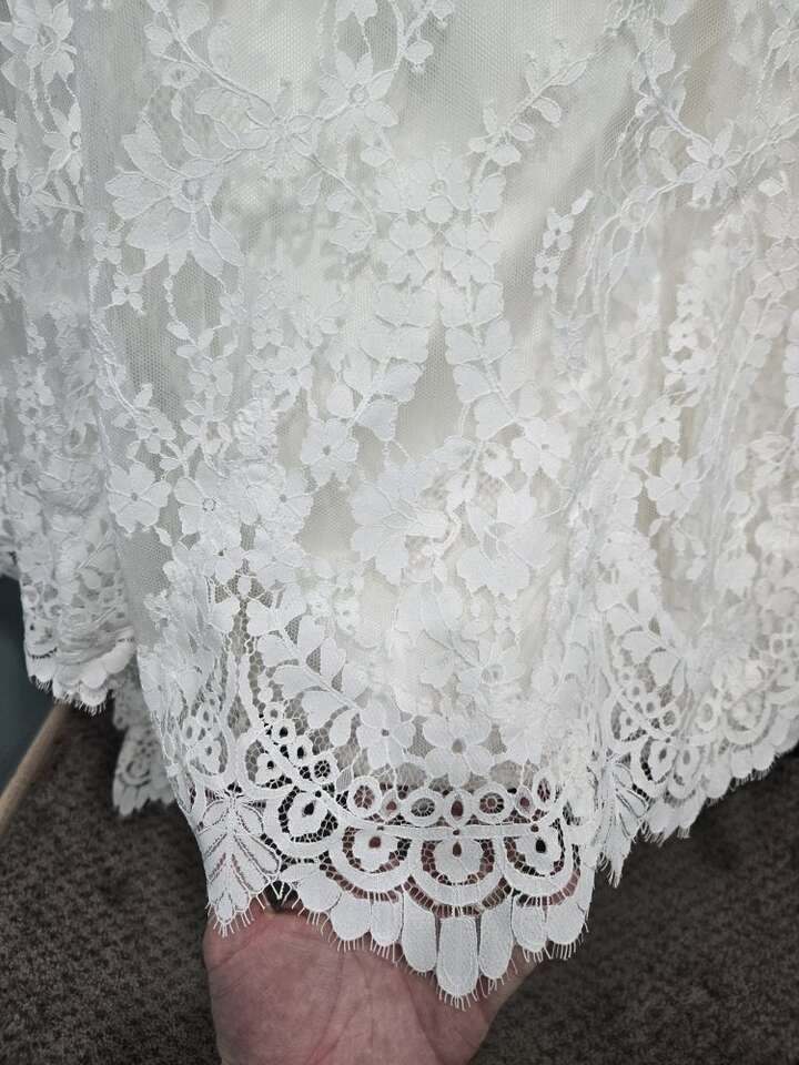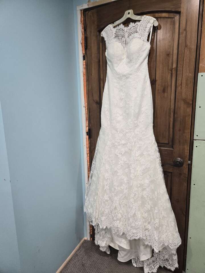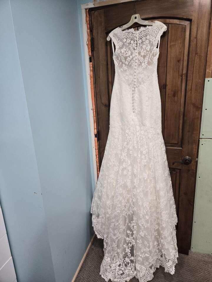 Size 6. Has a bustle, wristlet, and built in bra cups, and crochet hook for the back buttons. Originally $1100 at Mary's Bridal. It has been dry cleaned.