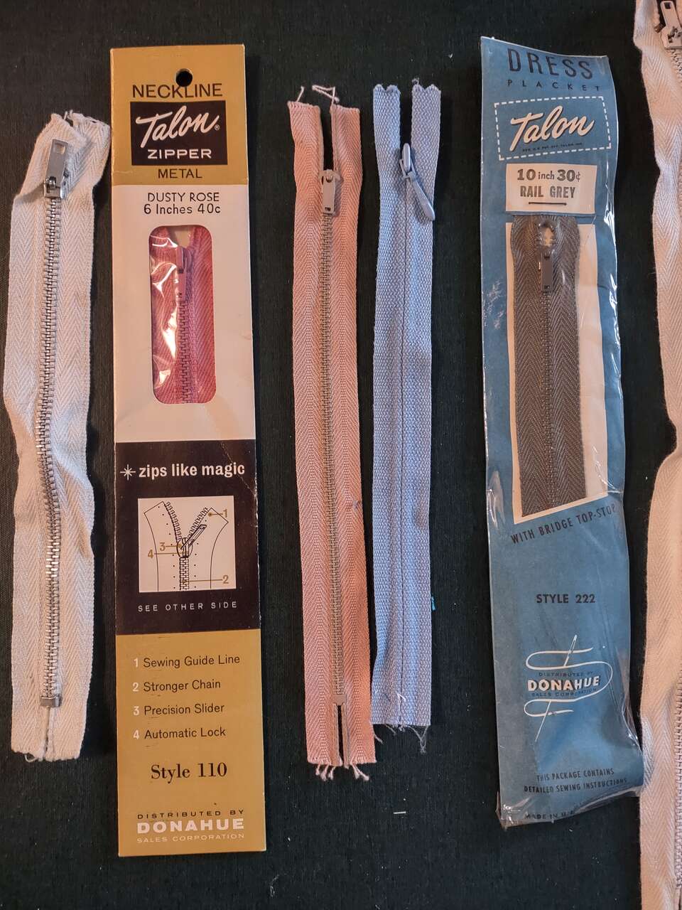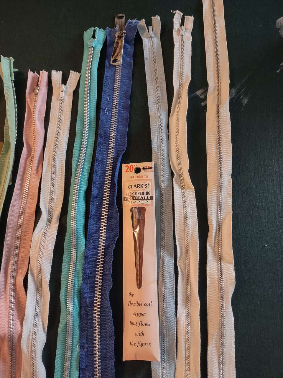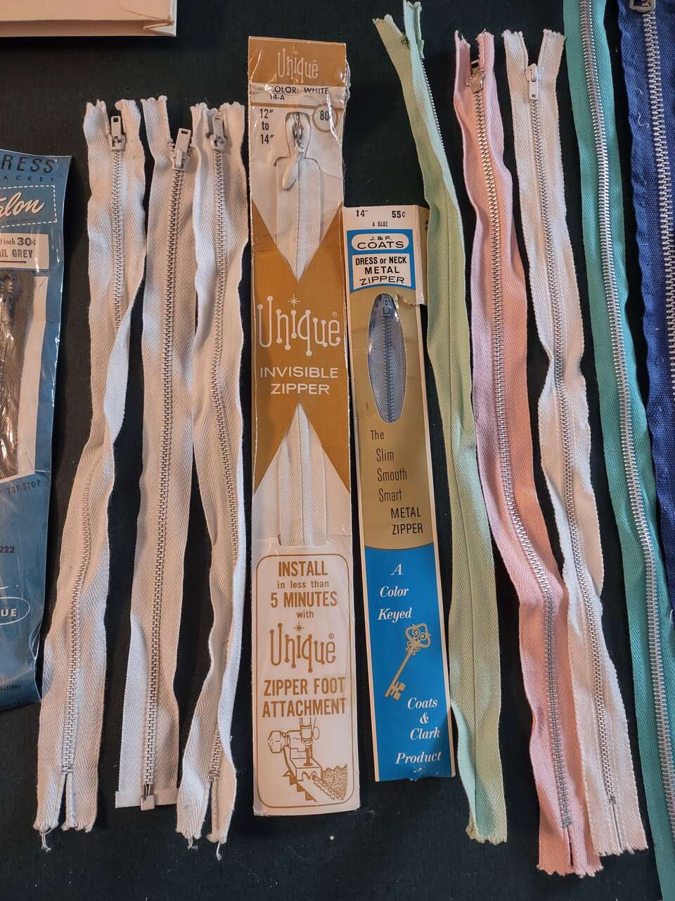 Venmo16 METAL SEWING ZIPPERS, NEW. Some still in original packaging. One 30" white; Two 22" one white and one Light Blue; One 20" Lt. Brown; One 19" Heavy Duty Reversible Blue; One 17" Turquoise; Five 14" white, pink lt green, lt blue and invisible white; Three 12" White; One 10" Gray; Two 7" Invisible Blue and one tan(SOLD); Two 6" Dusty Rose and one white. Some retail up to $7 each. ONLY $1.00 each Cash/Venmo. In Sandy. 801-201-5350 See all 4 photos for details.