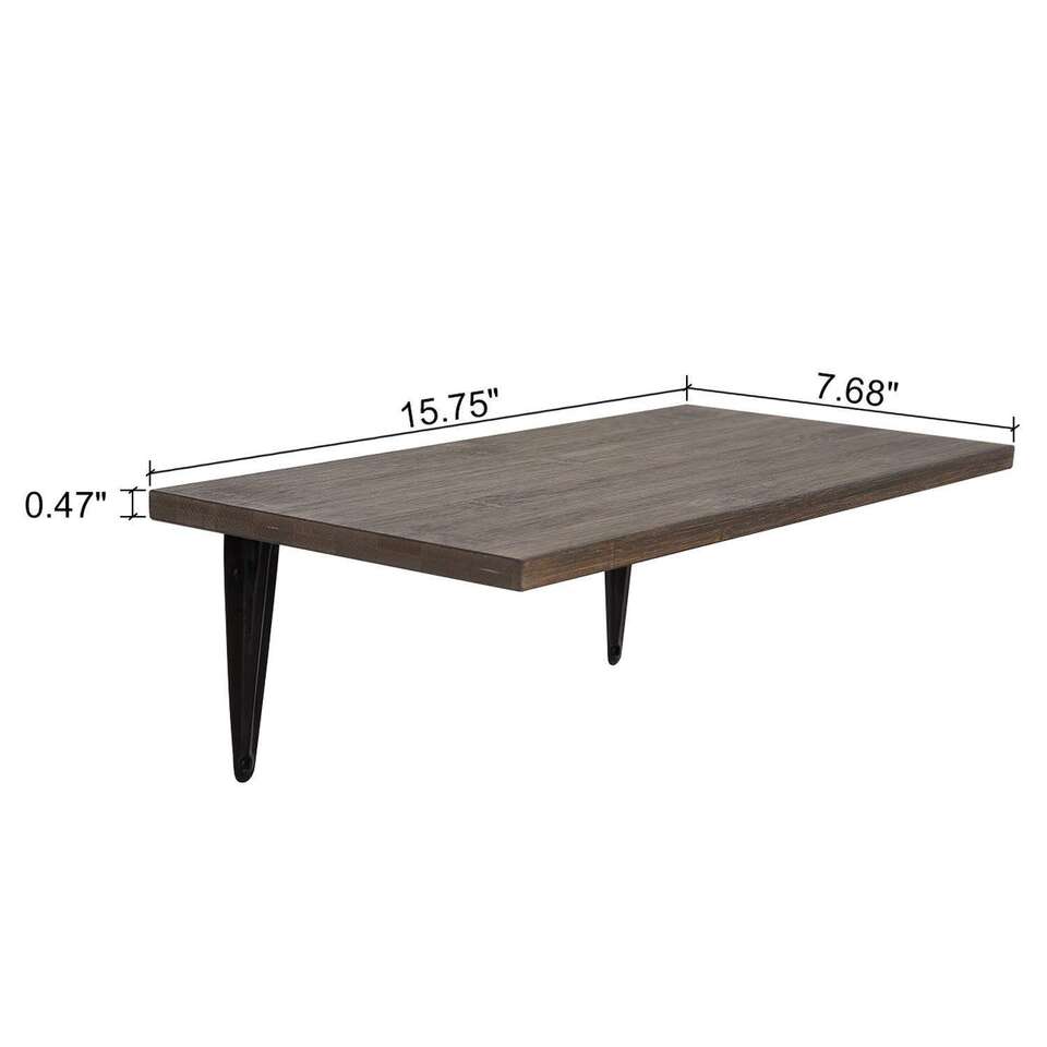 BAMFOX Lightweight Shelf Overall Dimensions: 15.7” x 7.7” x 3.5” . Board Size: 15.7” x 7.7” x 0.5” . Height of the Bracket:3 inch.These floating shelves are wider and stronger than regular narrow wall shelf, so you can safely store your small plants, photos, books, trophies, collectibles, etc.