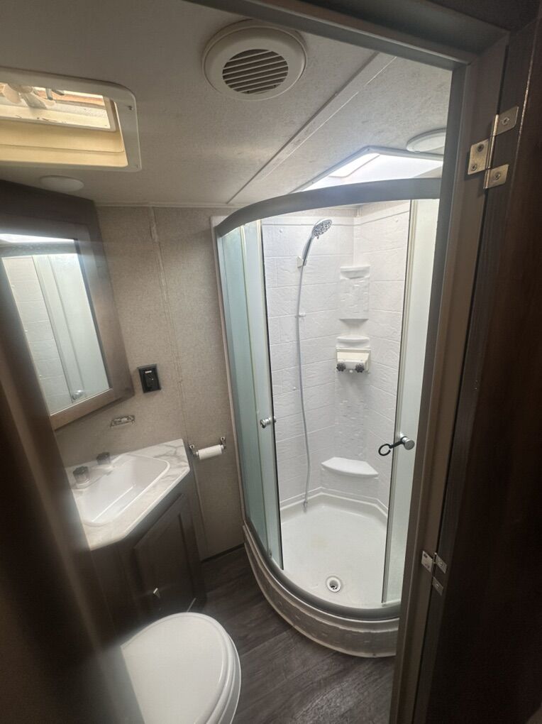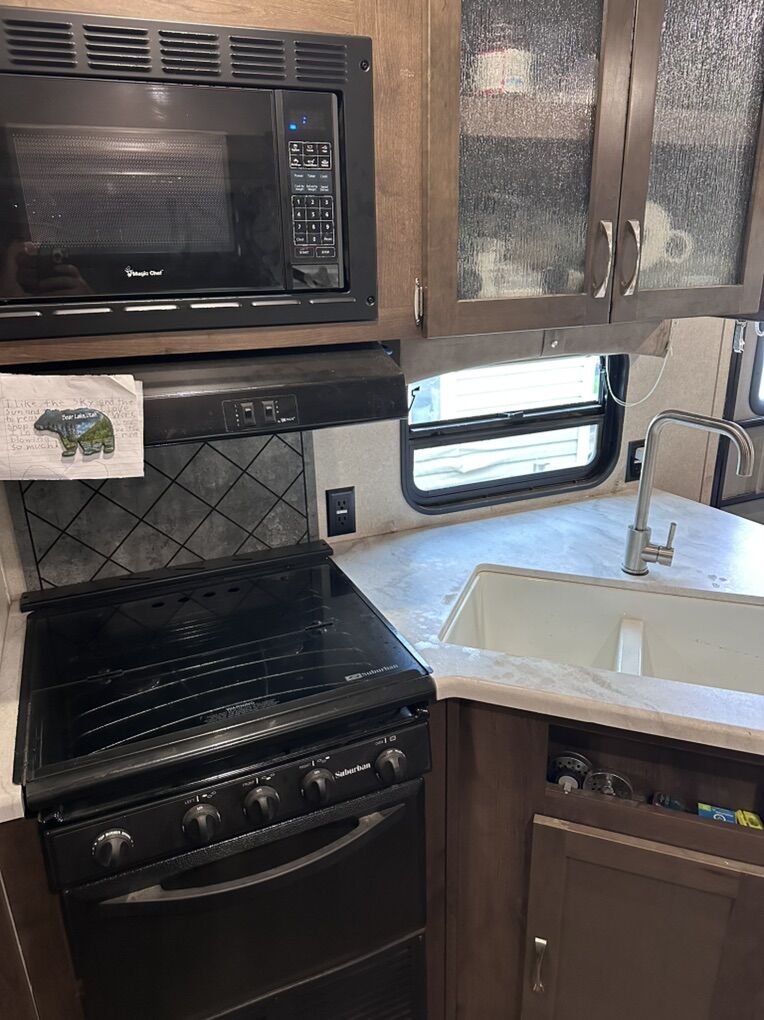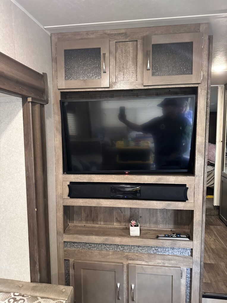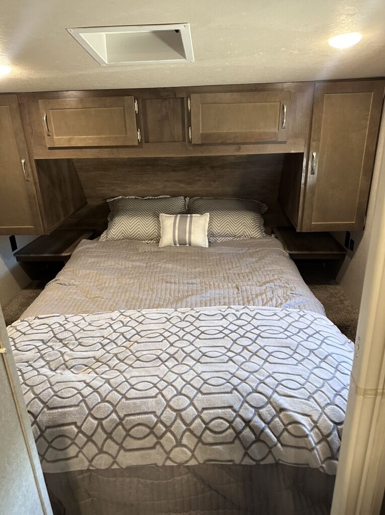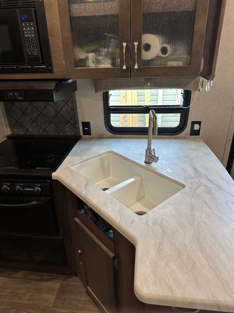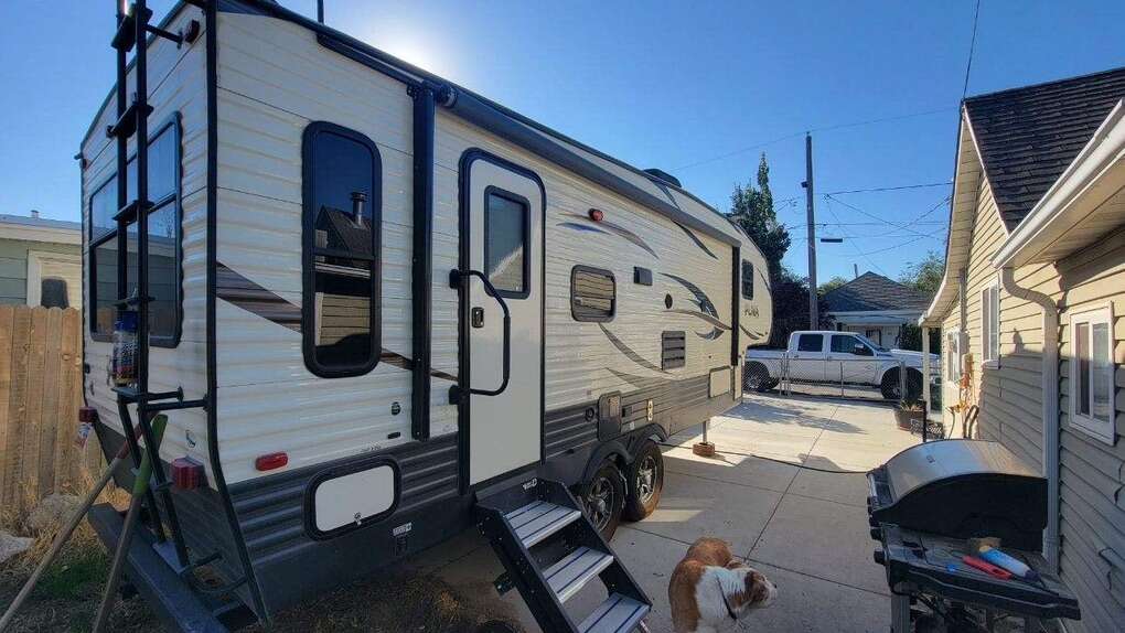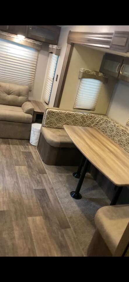 It has been an amazing trailer for us but it’s time to upgrade. It has a huge u shaped dinette that drops down to make a bed as well as a couch at the rear of the trailer that pulls into a bed. Lots of storage space and cabinets space. Trailer is light weight at only 8800 pounds and 27 feet long. Set up to pull doubles awning is pulled out and cleaned a multiple times a year. Every year when winterized and I inspect the walkable roof for any cracks or tears in the membrane.