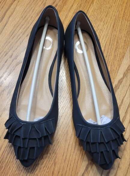 IF SERIOUSLY INTERESTED I'M ALWAYS WILLING TO REVIEW OFFERS!!! Step out in style and comfort with the Journee Collection Judy Ballet Flats. Crafted with a sleek black faux leather upper and a soft leather lining, these pointed toe flats are a versatile addition to any wardrobe. The ruffle accent adds a touch of playfulness to the classic slip-on design, making them perfect for both casual outings and dressier occasions.With a size US 8 and a medium width, these flats are tailored to fit the discerning foot. The solid pattern ensures they pair effortlessly with a variety of outfits, while the reliable slip-on closure means putting them on is as simple as it is stylish. Enjoy the blend of elegance and practicality that the Judy Ballet Flats offer.