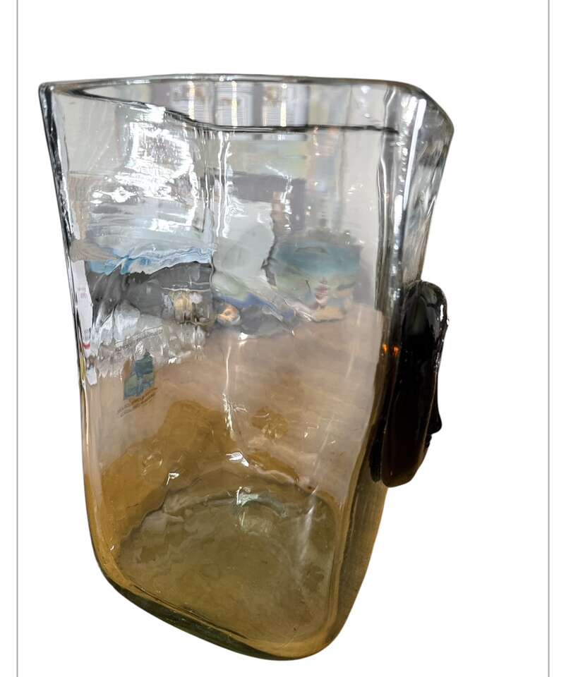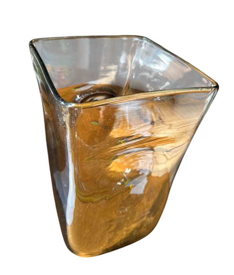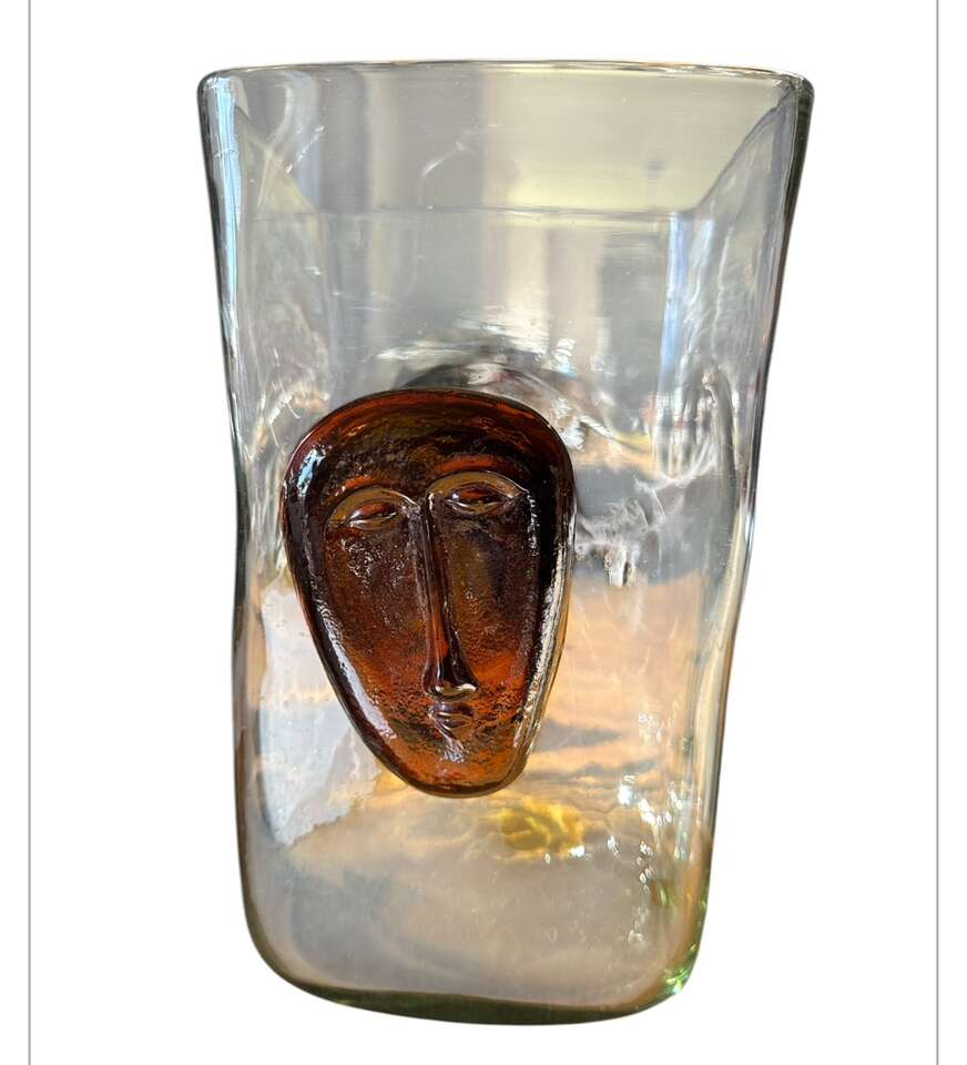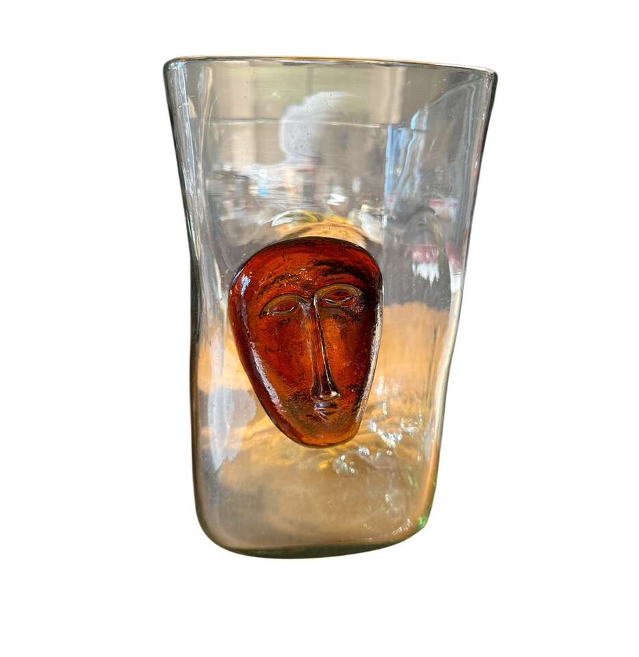 VenmoERIC HOGLUND For KOSTA BODA Art Glass VASE W/ Amber Applied FACE - 1960s - MCM 11” tall 6.6 square
