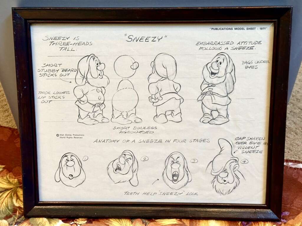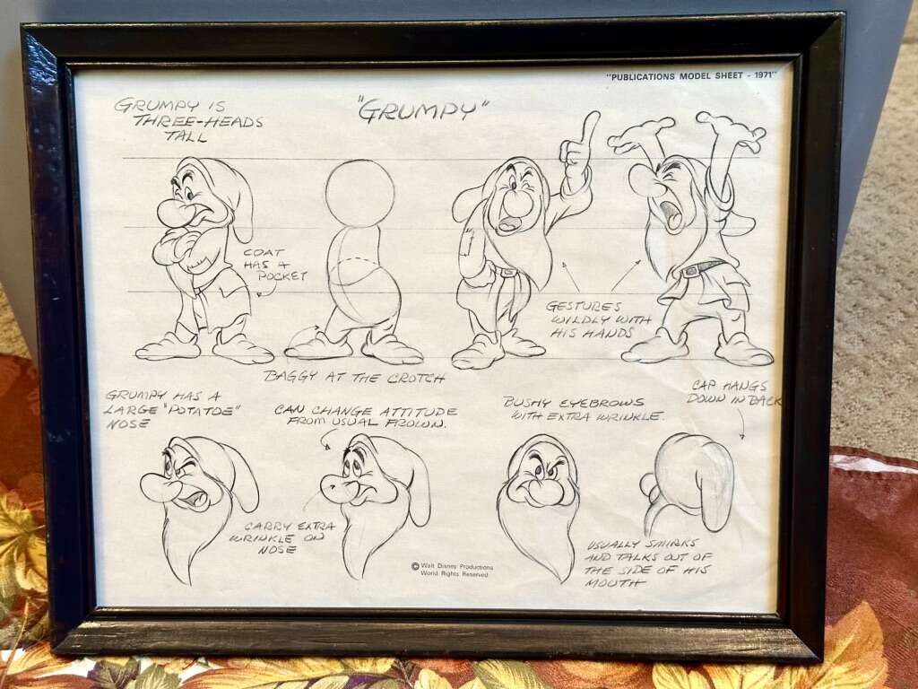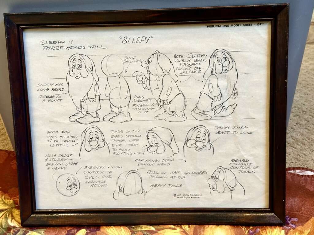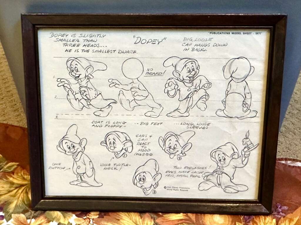 Set of 7 framed 12x15 Vintage model sheets of the Seven Dwarfs. Such a great collection! RARE to have all 7 together!!perfect collectible decor