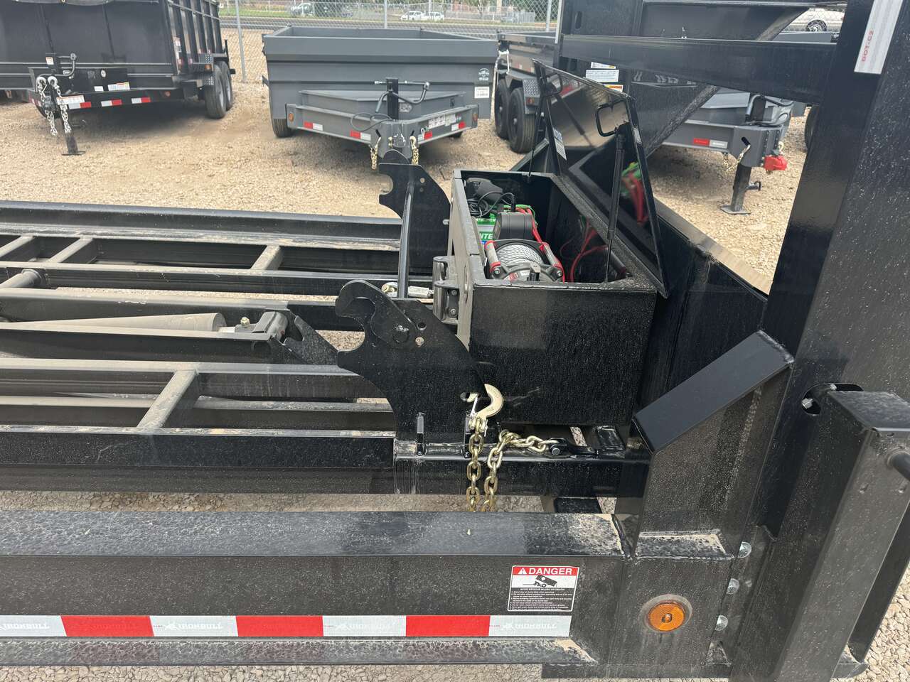 DBG is Iron Bull's first ever roll-off dump trailer. Standard with 2- 7k axles, 12’’ I-beam and a 22k winch and cable system. The distance between the two bin support rails is 60.75" wide. All backed by our industry leading Iron Clad Warranty. NOW AVAILABLE IN 16' and 20' with roll-off deck option!