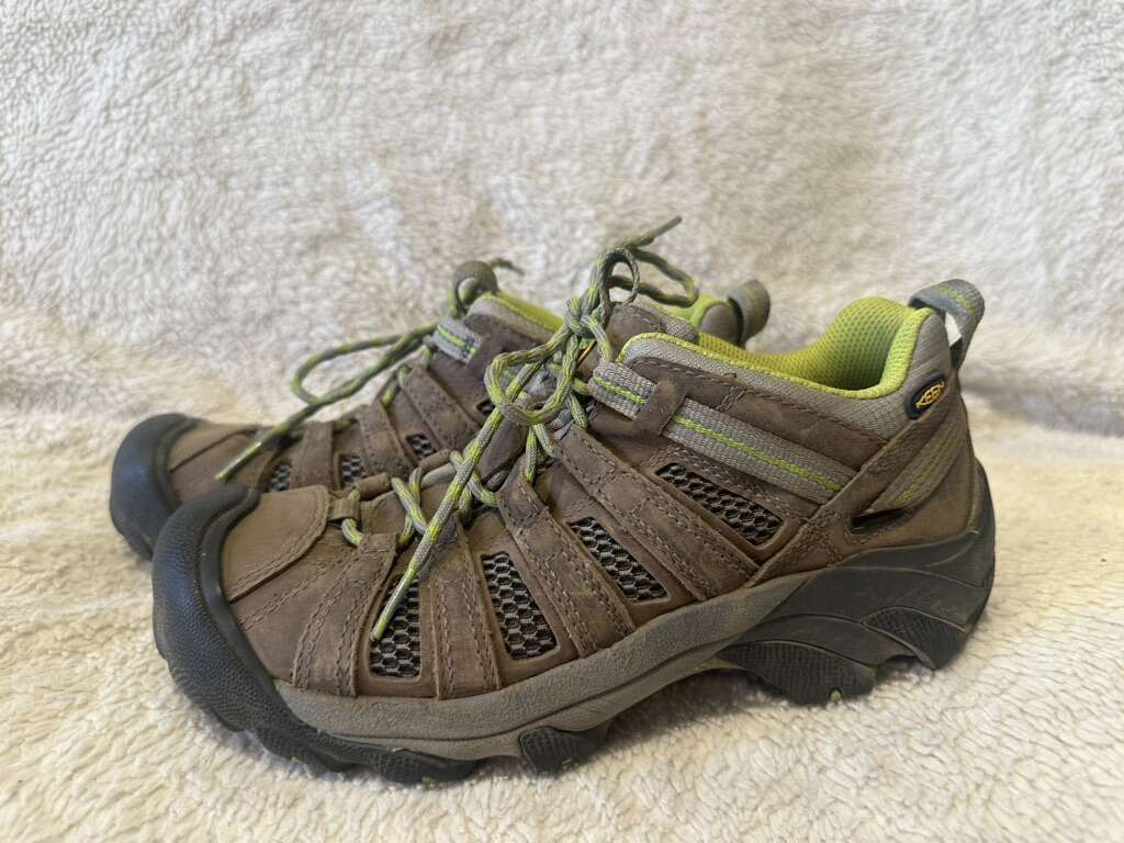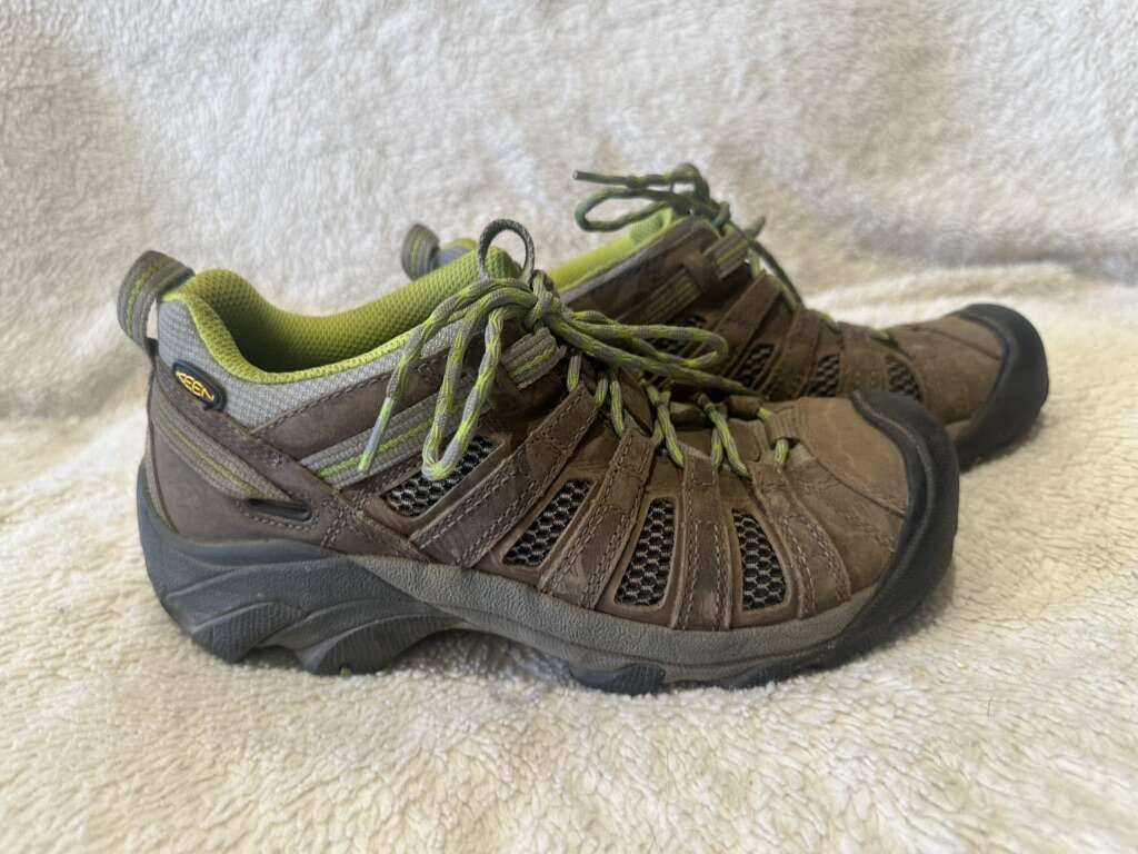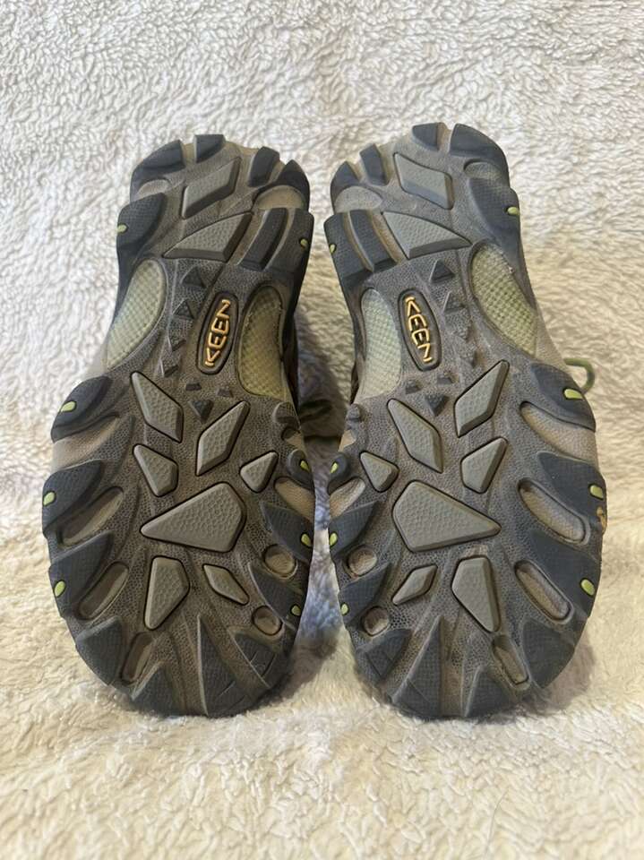 These are women’s size 8, but fit more like a 7-7.5. These are keen, hiking shoes and are made of brown leather and mesh with lime trim. They’re in good condition, see photos for details. I take cash or Venmo, but cash is preferred. Text is best. 801-201-4446.